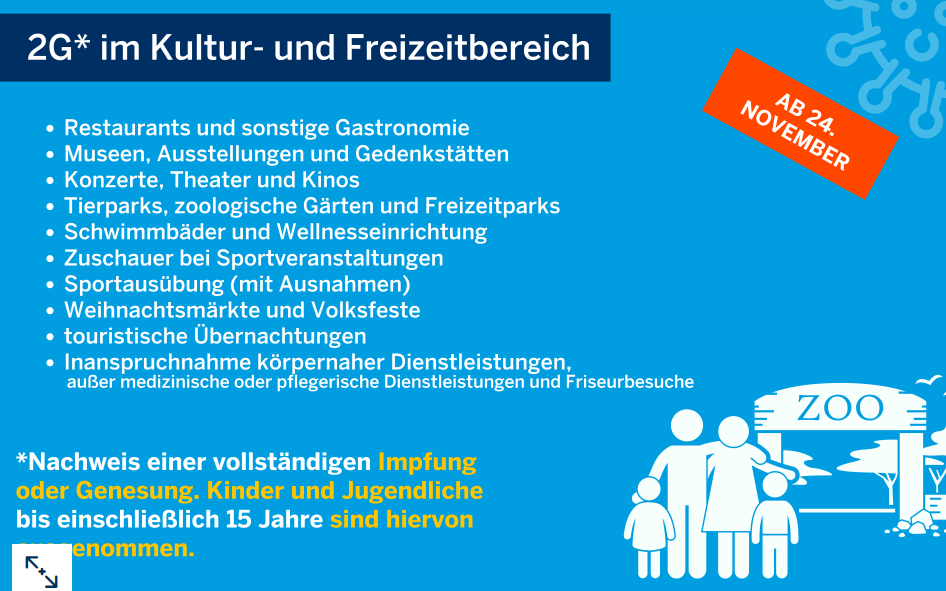 In ganz NRW und damit auch hier bei uns in Mülheim gilt ab heute 2G im Freizeitbereich. Das gibt die neue Coronaschutzverordnung vor. Damit dürfen ab sofort nur noch Geimpfte oder Genesene zum Beispiel ins Kino, in Ausstellungen, in Konzerte, in Zoos, Schwimmbäder oder Freizeitparks. Das gilt auch für den Besuch von Amateursportveranstaltungen und Weihnachtsmärkten.