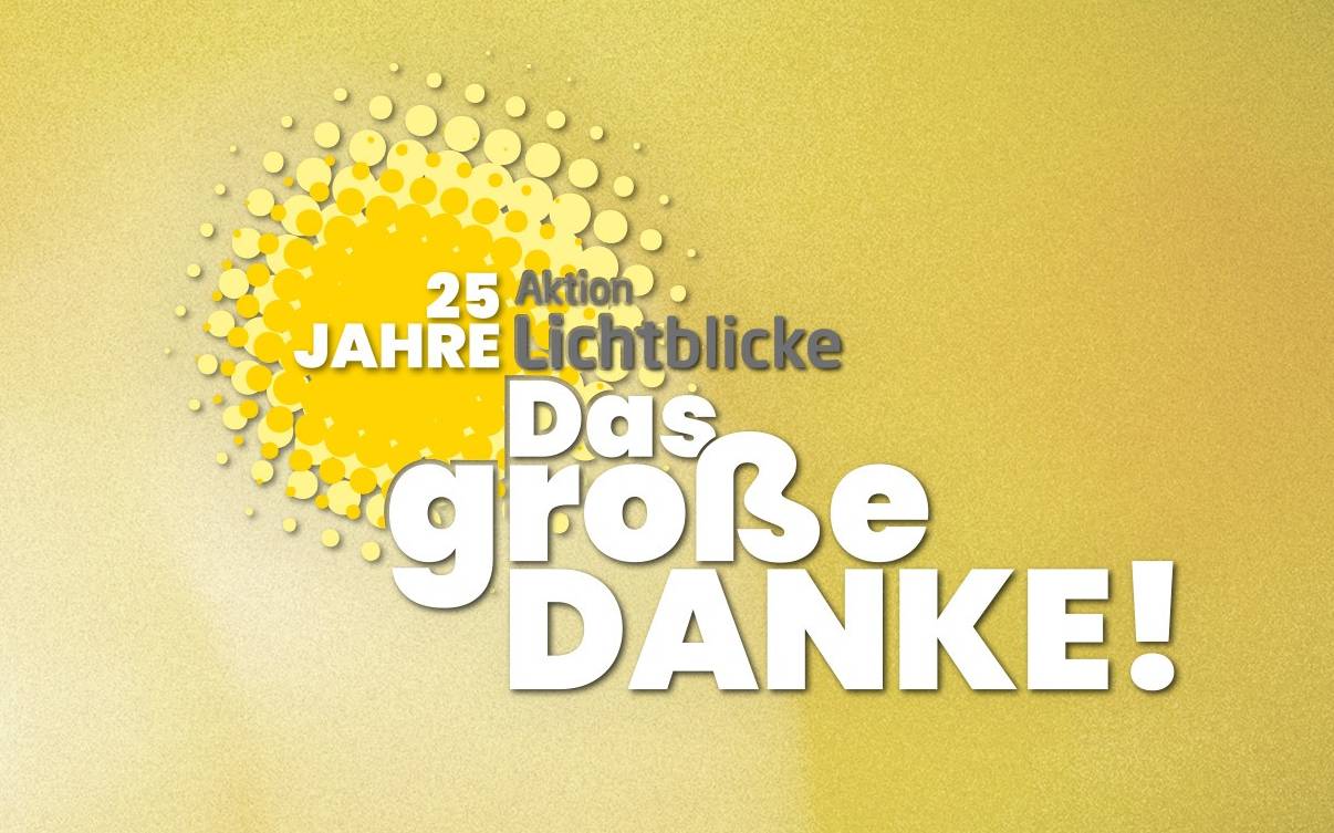 Die Aktion Lichtblicke e. V. feiert ihren 25. Geburtstag! Seit 1998 setzt sich die Hilfsorganisation für benachteiligte Kinder und Jugendliche aus NRW ein. Dieses Jubiläum wollen wir feiern: Vereine, (caritative) Verbände, soziale Einrichtungen, Jugendtreffs, Elterninitiativen oder Nachbarschaftshilfen mit Sitz in NRW können sich bei der Sonderaktion "Das große Danke!" um bis zu 25.000 Euro für ihre sozialen Projekte bewerben.