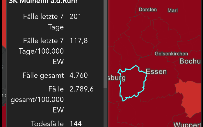 Aktuelle Coronazahlen: Mülheim wieder dunkelrot