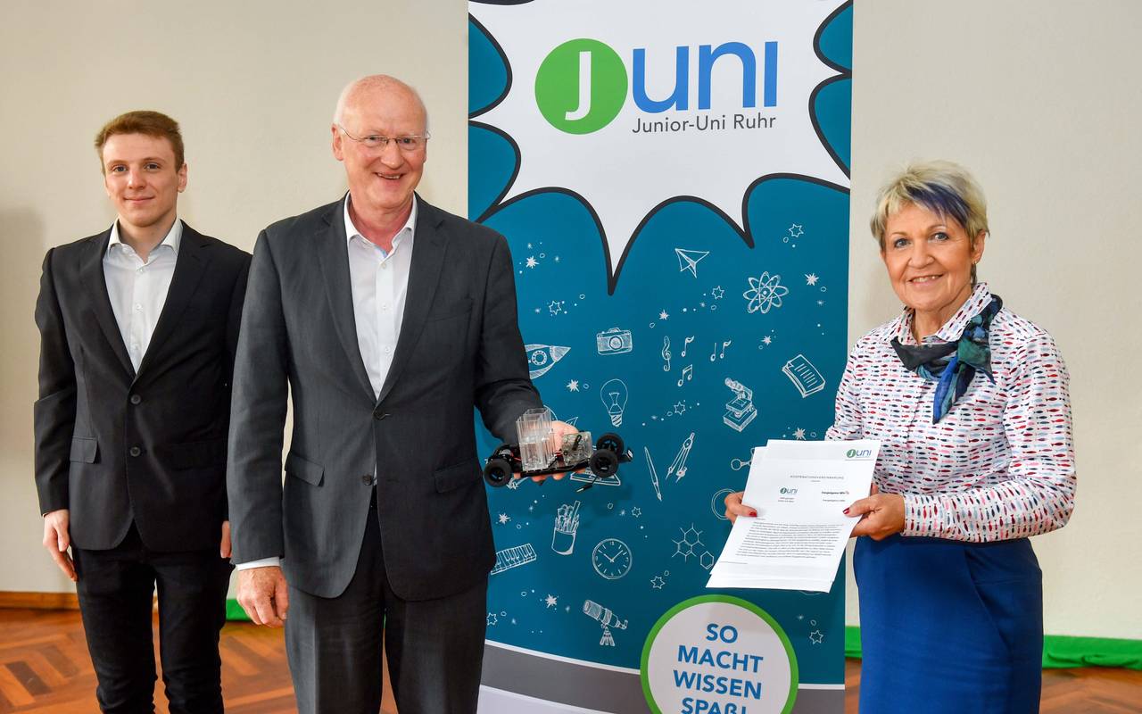 Die Agentur könne bei aktuellen Themen, wie Energiewende, alternative Antriebsstoffe oder auch umweltfreundliche Mobilität viele Fragen von Jugendlichen beantworten. Schon bevor das Papier unterzeichnet war, hat die EnergieAgentur.NRW einen Kurs mit angeboten. Jugendliche konnten hier praktische erfahren, wie Wasserstoff und Brennstoffzellen zusammen wirken. Die Junior-Uni Ruhr hat mittlerweile über 50 Partner, die das Kursprogramm mitgestalten.
