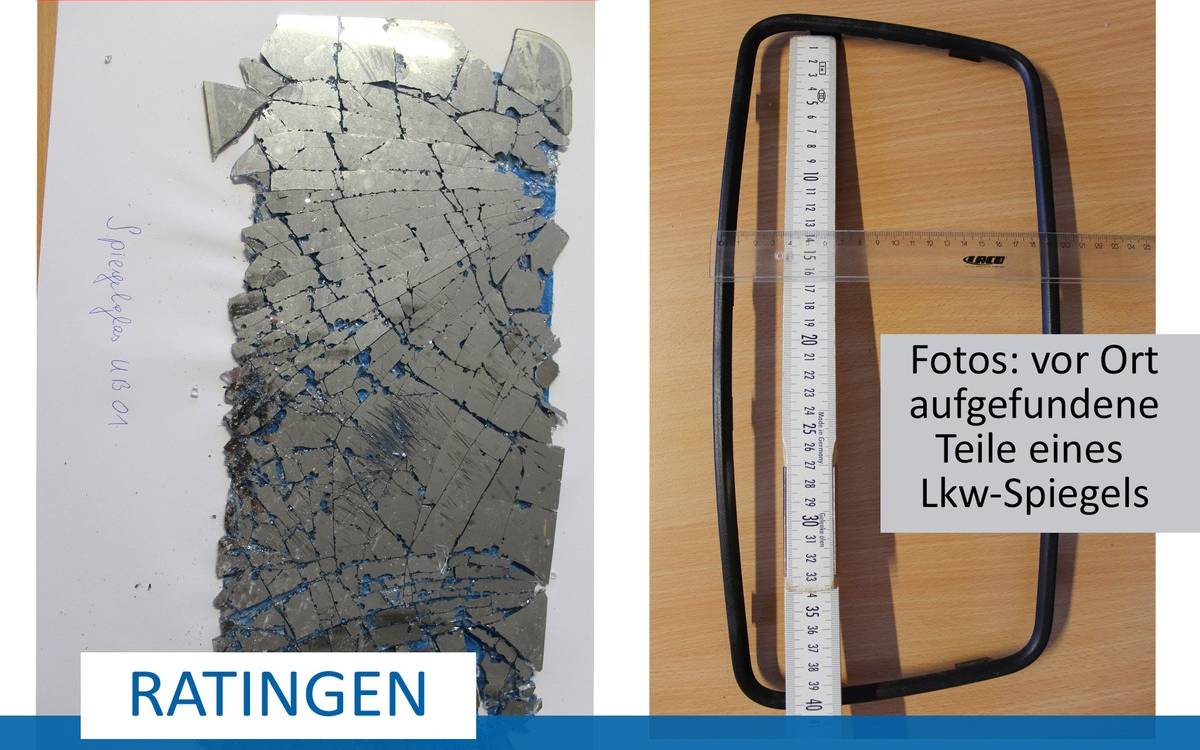 Die 44-Jährige kam mit schweren Verletzungen ins Krankenhaus. Sie ist außer Lebensgefahr, kann aber noch nicht befragt werden, sagt die Polizei. Zeugen hatten angegeben, dass sie in der Nähe einen Laster mit Warnblinklicht auf dem Dach gesehen haben - vermutlich ein Baustellenfahrzeug. Die Polizei hat das Foto eines zersplitterten LKW-Spiegels veröffentlicht. Damit hatte der Fahrer die Frau vermutlich getroffen. Der Spiegel war dabei abgebrochen.