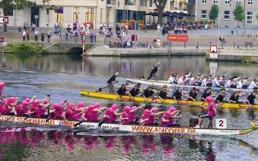 Ab sofort könnt ihr euch für das Mülheimer Drachenboot-Festival 2025 und den Drachenboot Indoor Cup der Sparkasse Mülheim anmelden. Das hat die DJK Ruhrwacht mitgeteilt. Das Drachenbootfestival läuft am 6. und 7. September zwischen Schloß- und Eisenbahnbrücke in der Ruhrarena. In diesem Jahr können 12er und 20er Teams in den Startklassen Mixed, OPEN, Jugend und Frauen starten. Es können Vereinsteams, Theken-Teams, Schulen, Jugendgruppen, Freundeskreise, Hobbymannschaften und alle die 12 oder 20 Personen zusammen trommeln teilnehmen. Wer sich früh anmeldet, erhält einen Frühbucherrabatt.