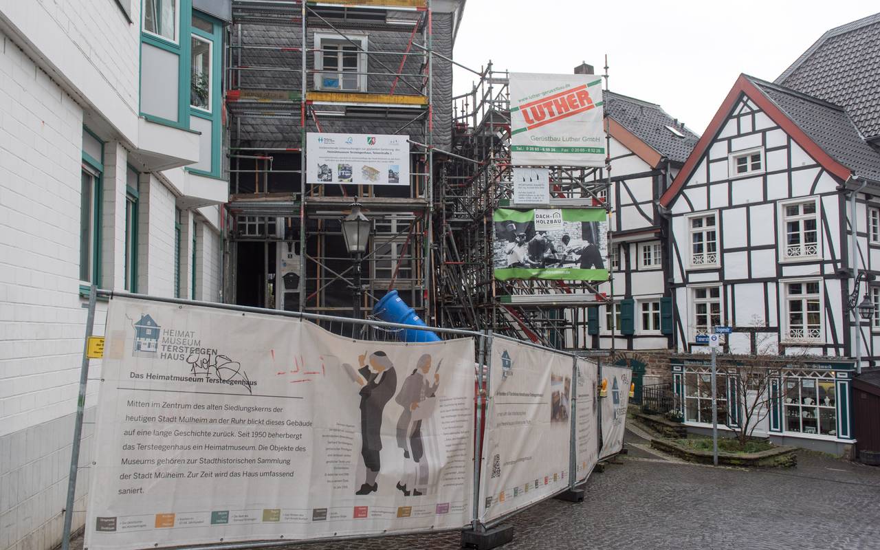 Grund für die Maßnahme waren statische Mängel und ein Pilzbefall. Jetzt können die Arbeiten in kleinen Schritten fortgesetzt werden. Die maroden Bauteile werden nach und nach ausgetauscht. Mitte Juli soll dafür ein neues kleineres Gerüst hochgezogen werden. Der Plan ist, bis Ende des Jahres Faulpilz komplett zu beseitigen. Das Tersteegenhaus ist seit über vier Jahren geschlossen. Hier ist eigentlich das Heimatmuseum der Stadt untergebracht. In den nächsten Jahren sollen weitere Bauarbeiten folgen. Auch ein neuer Anbau ist geplant.