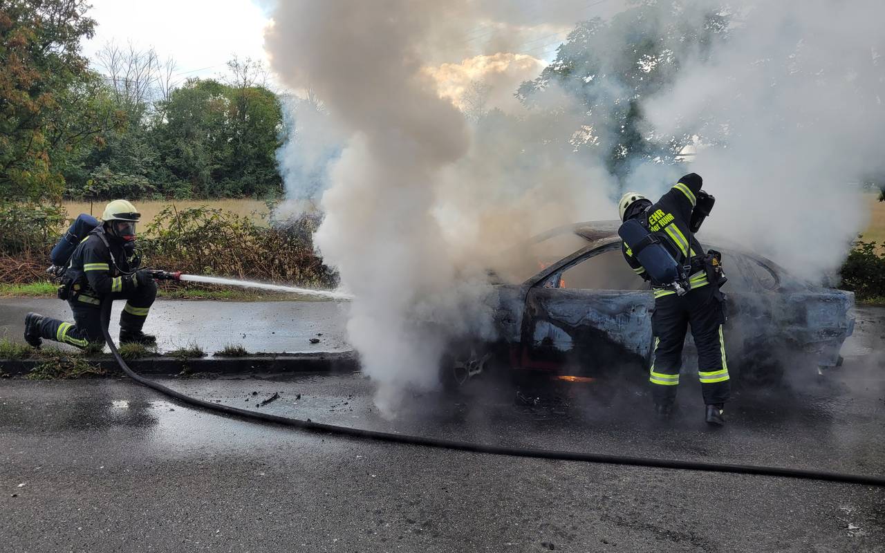 Dort geriet das Fahrzeug dann in Vollbrand. Verletzte gab es laut Feuerwehr nicht. Fahrer und Beifahrerin konnten sich noch rechtzeitig in Sicherheit bringen. Die Einsatzkräfte waren mit einem Löschfahrzeug vor Ort und konnten den Brand schnell unter Kontrolle bringen. Nach 45 Minuten war der Einsatz beendet. Anschließend wurde das Fahrzeug der Polizei übergeben.