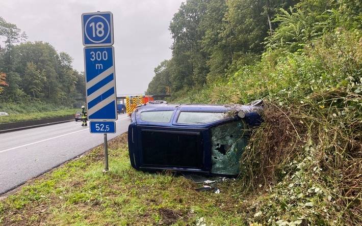 Er geriet auf den Grünstreifen, das Auto überschlug sich und blieb dann auf der rechten Fahrzeugseite liegen. Ersthelfer konnten den Fahrer befreien. Er war nicht eingeklemmt, aber nach dem Unfall in seinem Wagen eingeschlossen. Er kam leicht verletzt ins Krankenhaus. Während des Rettungseinsatzes war die rechte Fahrspur etwa eine halbe Stunde für den Verkehr gesperrt. Die Polizei ermittelt wegen der Unfallursache.