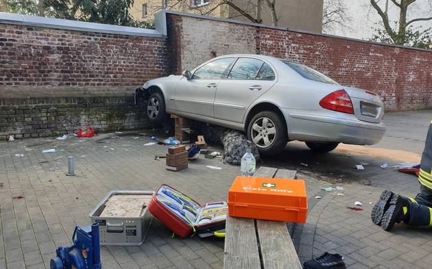 Außerdem haben der Fahrer und seine Beifahrerin einen Schock erlitten. Alle sind ins Krankenhaus gebracht worden. Notfallseelsorger mussten Zeugen des Unfalls betreuen. Nach ersten Angaben hat gegen 15.45 Uhr anscheinend ein Autofahrer auf dem Parkplatz aus Versehen Fußgänger umgefahren. Er kam mit seinem Wagen erst an einer Mauer zum Stehen, heißt es von der Feuerwehr. Bei den Schwerverletzten handelt es sich um eine Frau, die unter dem Fahrzeug eingeklemmt und mitgeschleift wurde, außerdem um einen Mann, der von dem Auto erfasst wurde. Wie das passieren konnte, ob der Autofahrer zum Beispiel Gas und Bremse verwechselt hat, muss die Polizei noch ermitteln. Weitere Details sind aktuell noch nicht bekannt.