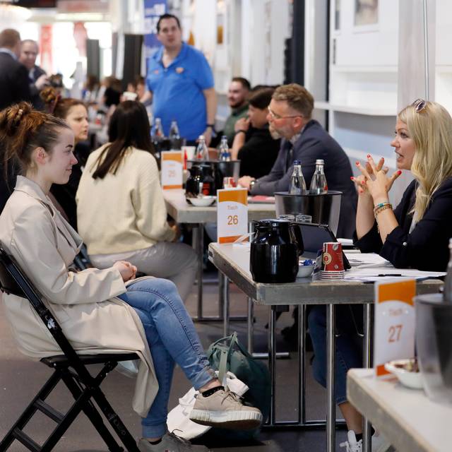 60 Unternehmen aus unterschiedlichen Branchen werden vor Ort sein. Die Bewerber haben die Möglichkeit, sich im Zehn-Minuten-Gesprächstakt bei den Ausbildungsbetrieben persönlich vorzustellen und sich direkt für einen Ausbildungsplatz zu bewerben. Das Azubi-Speed-Dating in der Stadthalle läuft mittlerweile zum fünften Mal. Organisiert haben es die Agentur für Arbeit und das Jobcenter.
