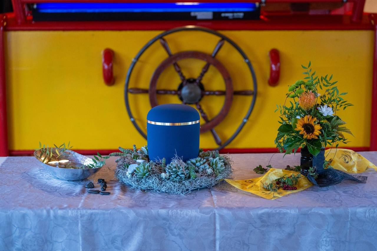 Ob die Bestattung auf dem Schiff mit oder ohne Angehörige erfolge, könne gewählt werden, fügt Zimmermann hinzu. Möglich sei sie auch mit oder ohne Fahrt. Auf dem Oberdeck habe er Platz für 60 Leute.