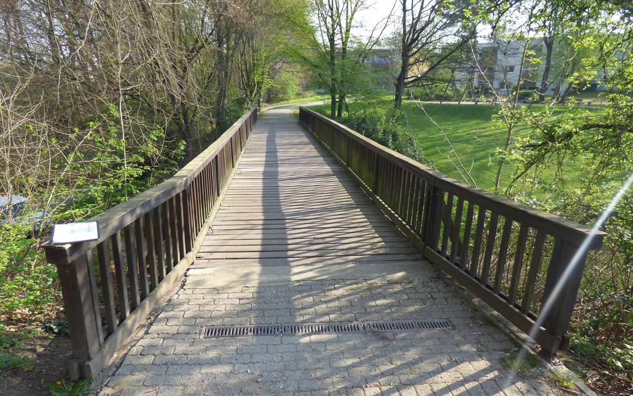 Die Brücke wird deshalb durch eine Stahlkonstruktion ersetzt. Sie soll einen rutschsicheren, glasfaserverstärkten Belag bekommen. Die Brücke liegt in einem Grünstreifen und verbindet die Wohnquartiere an der Heinrichstraße und der Folkenbornstraße miteinander. Die Arbeiten sollen rund zwei Wochen dauern. Umleitungen für Fußgänger und Radfahrer sind ausgeschildert.