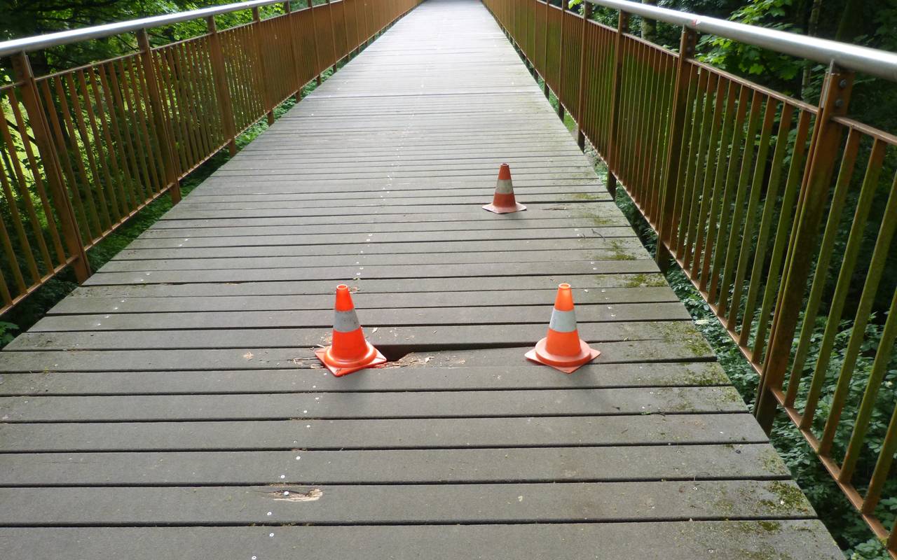 Bodenbelag kaputt - Fußgängerbrücke gesperrt