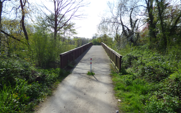 Ab Montag ist die Brücke über die Holunderstraße in Saarn gesperrt. Holzteile der 135 Meter langen Brücke sind morsch und müssen ausgetauscht werden, sagt die Stadt Mülheim.