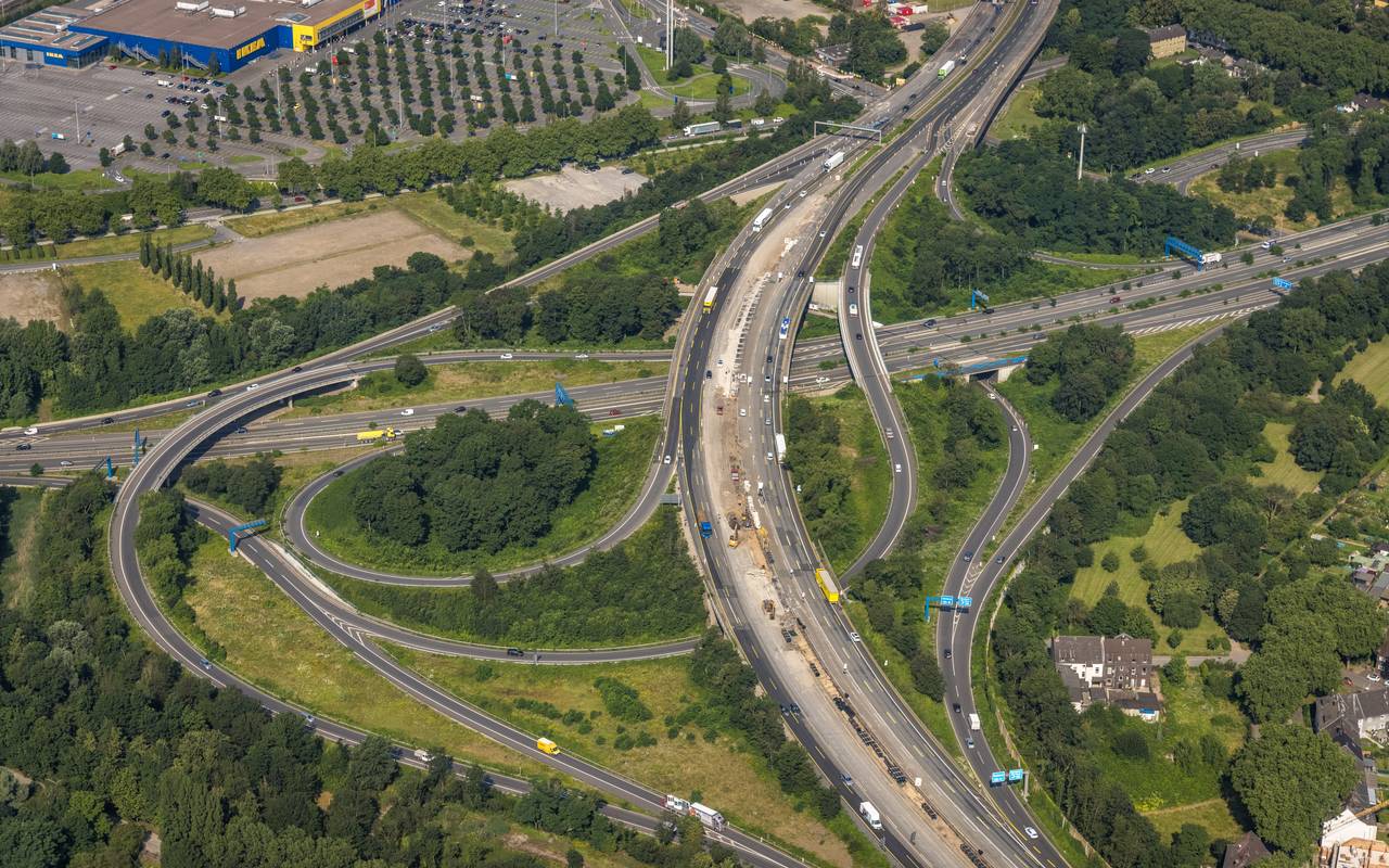 Umleitungen sind ausgeschildert. Die Autobahn GmbH Rheinland arbeitet an der Brücke der A42 über die A59. Sie wird verstärkt, um das Verkehrsaufkommen in den nächsten Jahren bewältigen zu können.