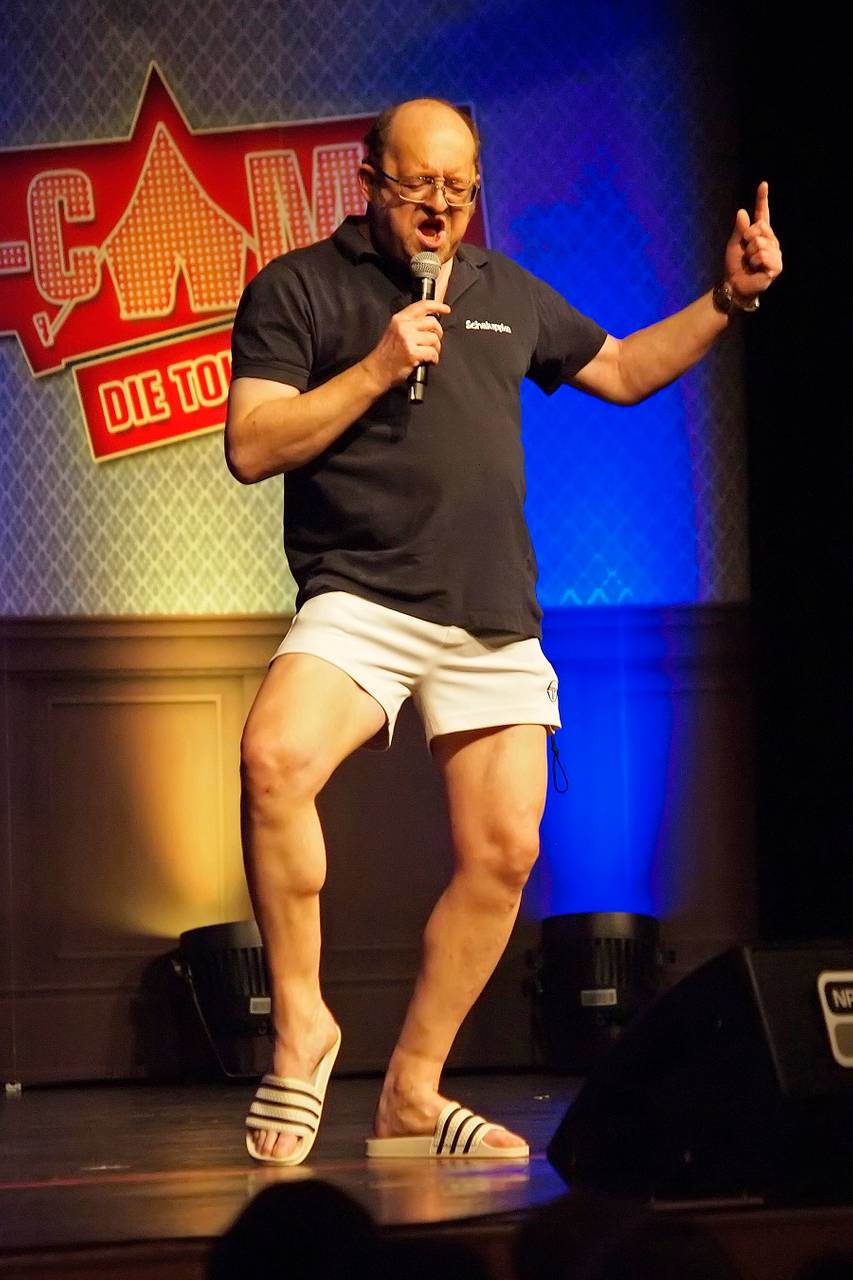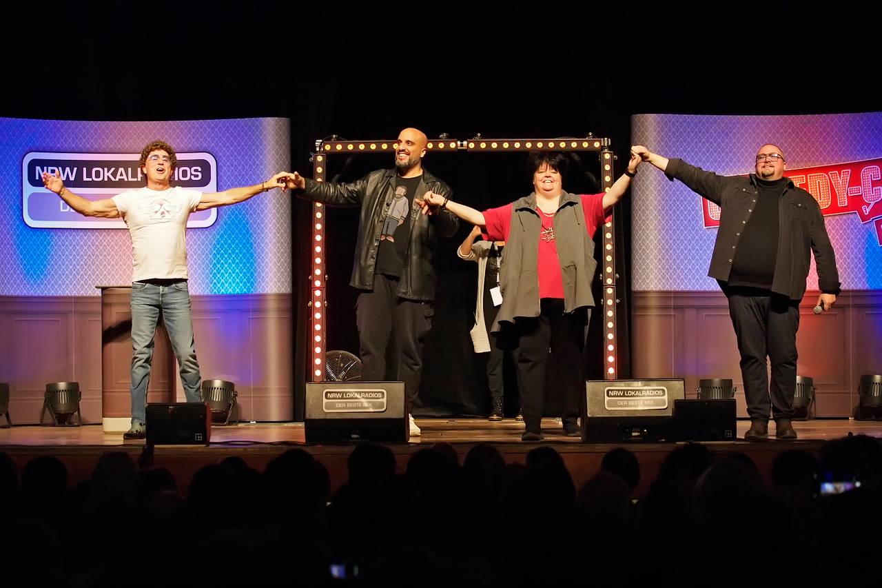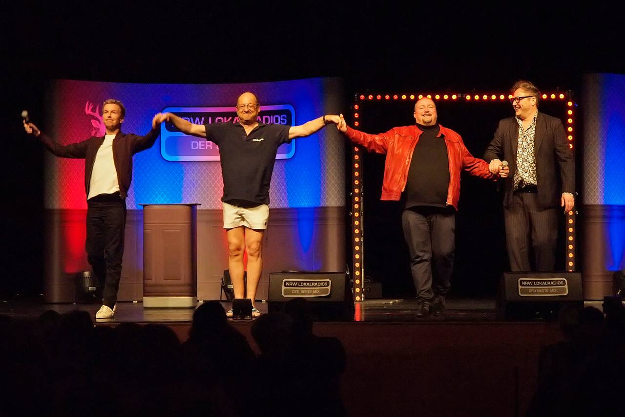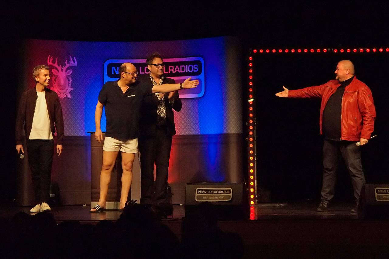 Als Gastgeber begrüßte Jürgen Bangert: Atze Schröder, Ingrid Kühne, Abdelkarim.