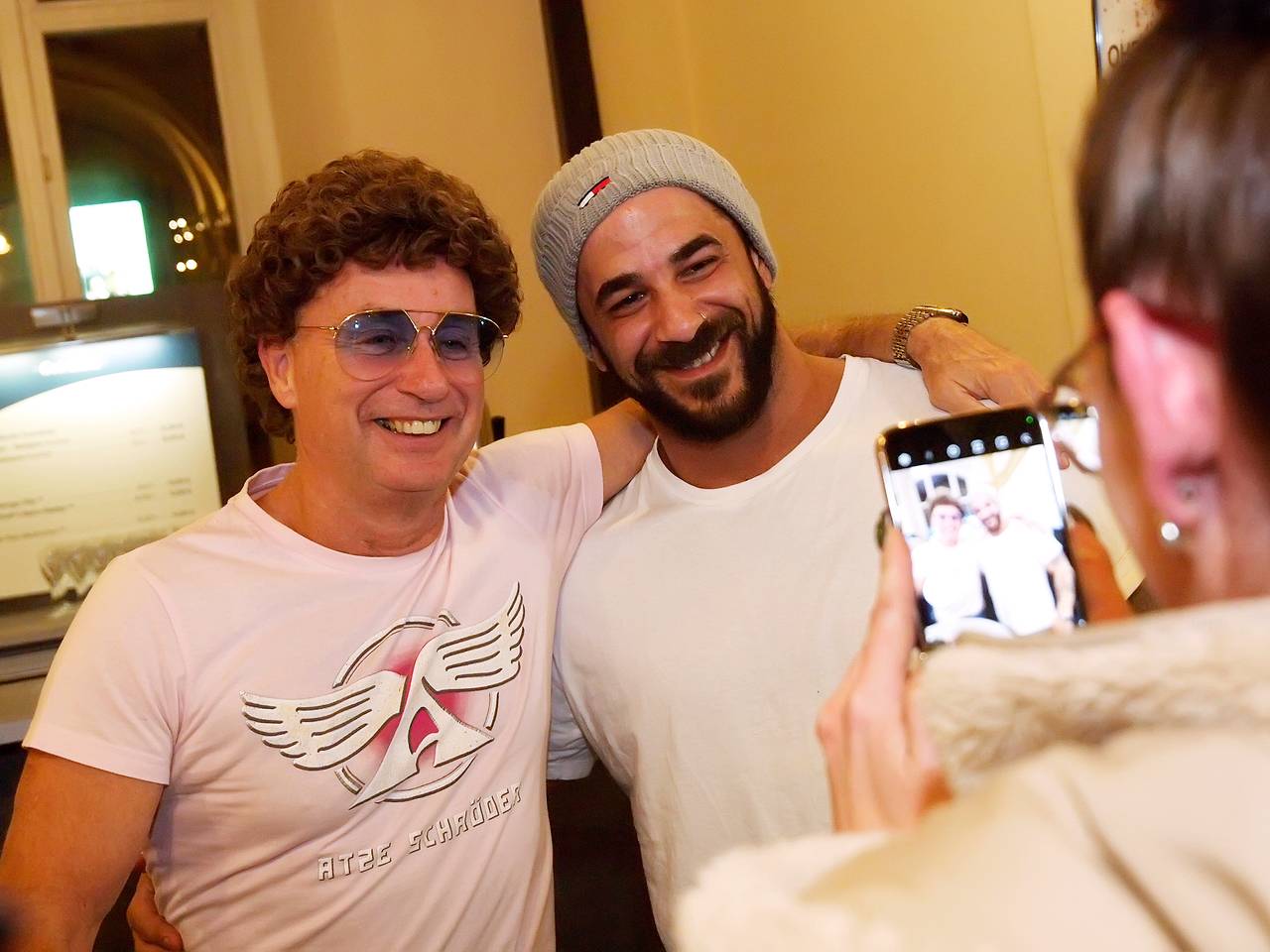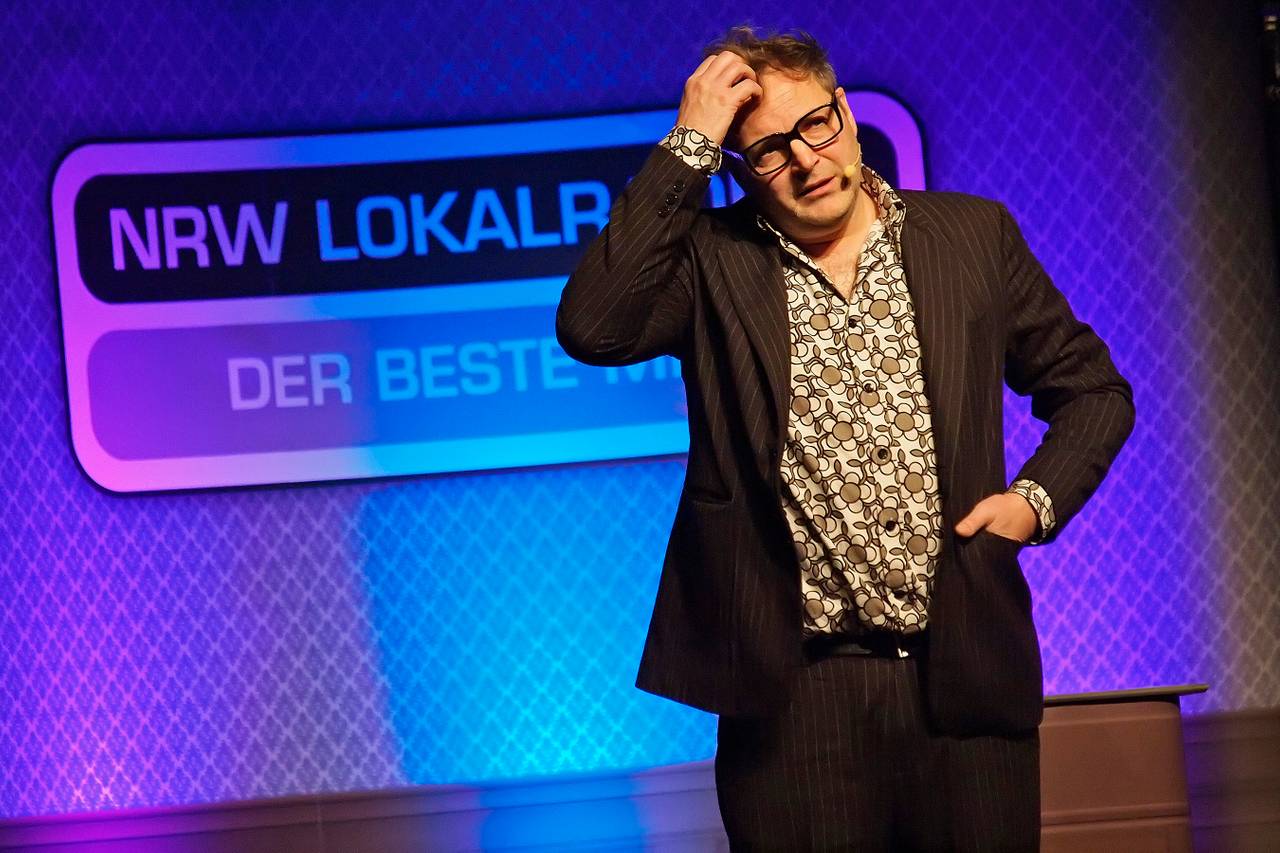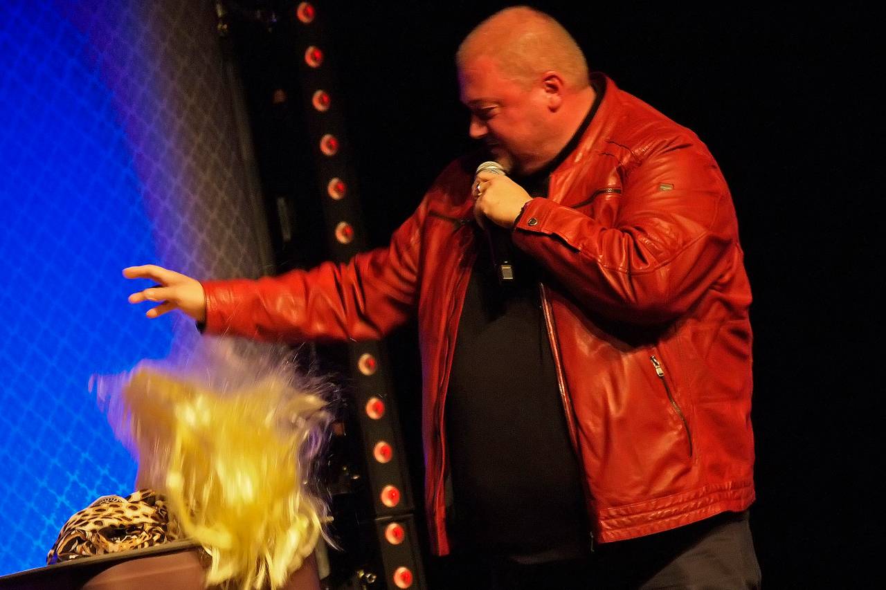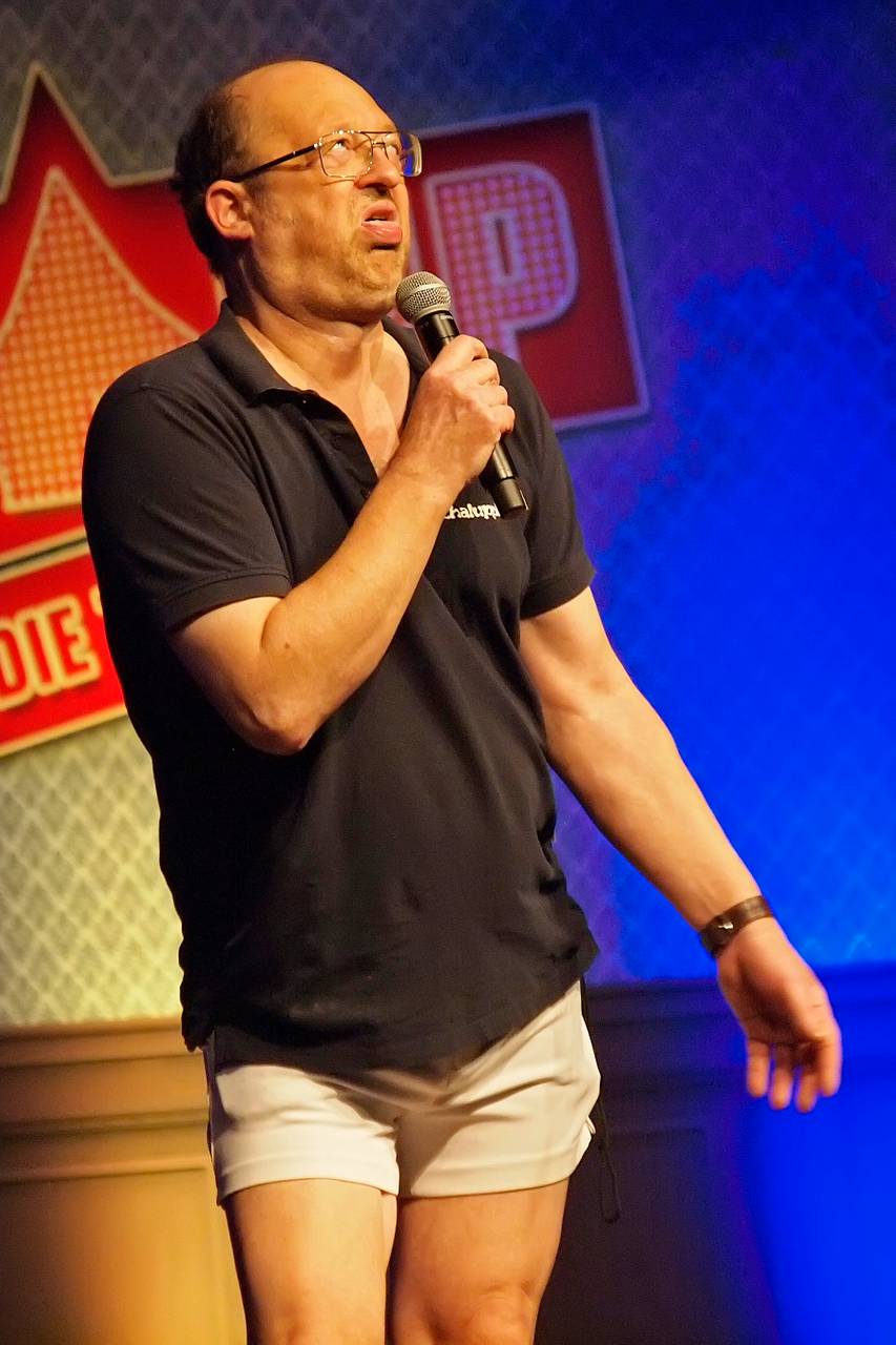Als Gastgeber begrüßte Jürgen Bangert: Atze Schröder, Ingrid Kühne, Abdelkarim.