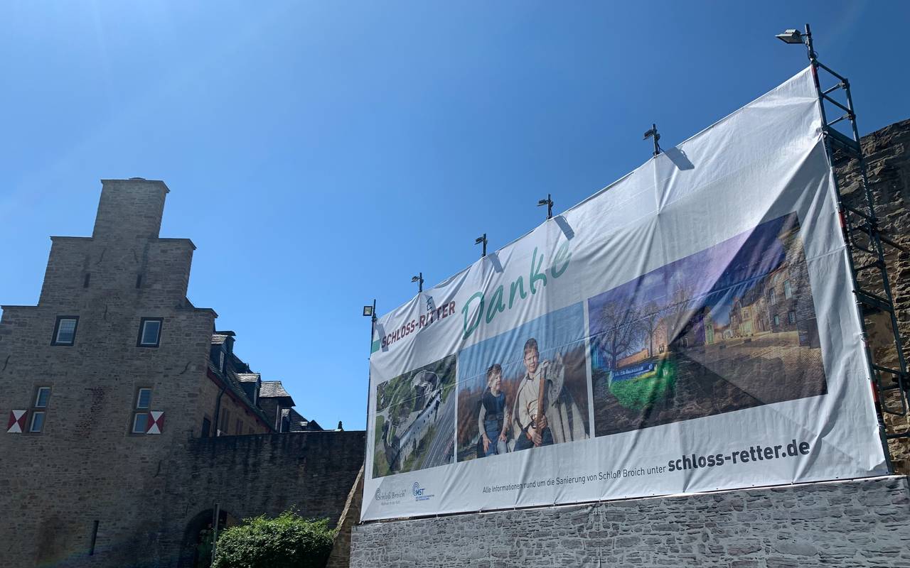 Die MST ist für den Unterhalt von Schloß Broich zuständig und wurde bei der Sanierung durch viele Spenden und Aktionen unterstützt. Bereits im Januar wurde eine Spendentafel mit 150 Namen im Innenhof aufgestellt. Mit dem neuen Banner will die MST noch einmal alle an dem Projekt beteiligten Schloss-Retter ehren. Der Innenhof ist derzeit täglich von 8 bis 20 Uhr öffentlich zugänglich.