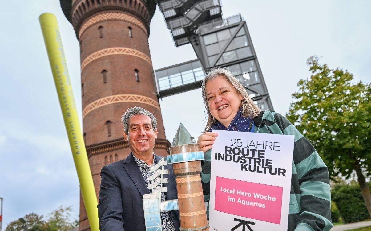 Der Aquarius Wasserturm in Styrum steht eine Woche lang besonders im Blick. Der Turm ist als Local Hero ausgewählt worden. Anlässlich des 25jährigen Jubiläums der Route Industriekultur genießen in diesem Jahr die 27 sogenannten Ankerpunkte jeweils für eine Woche besondere Aufmerksamkeit. In der Woche vom 30. September bis 6. Oktober ist es der Aquarius.