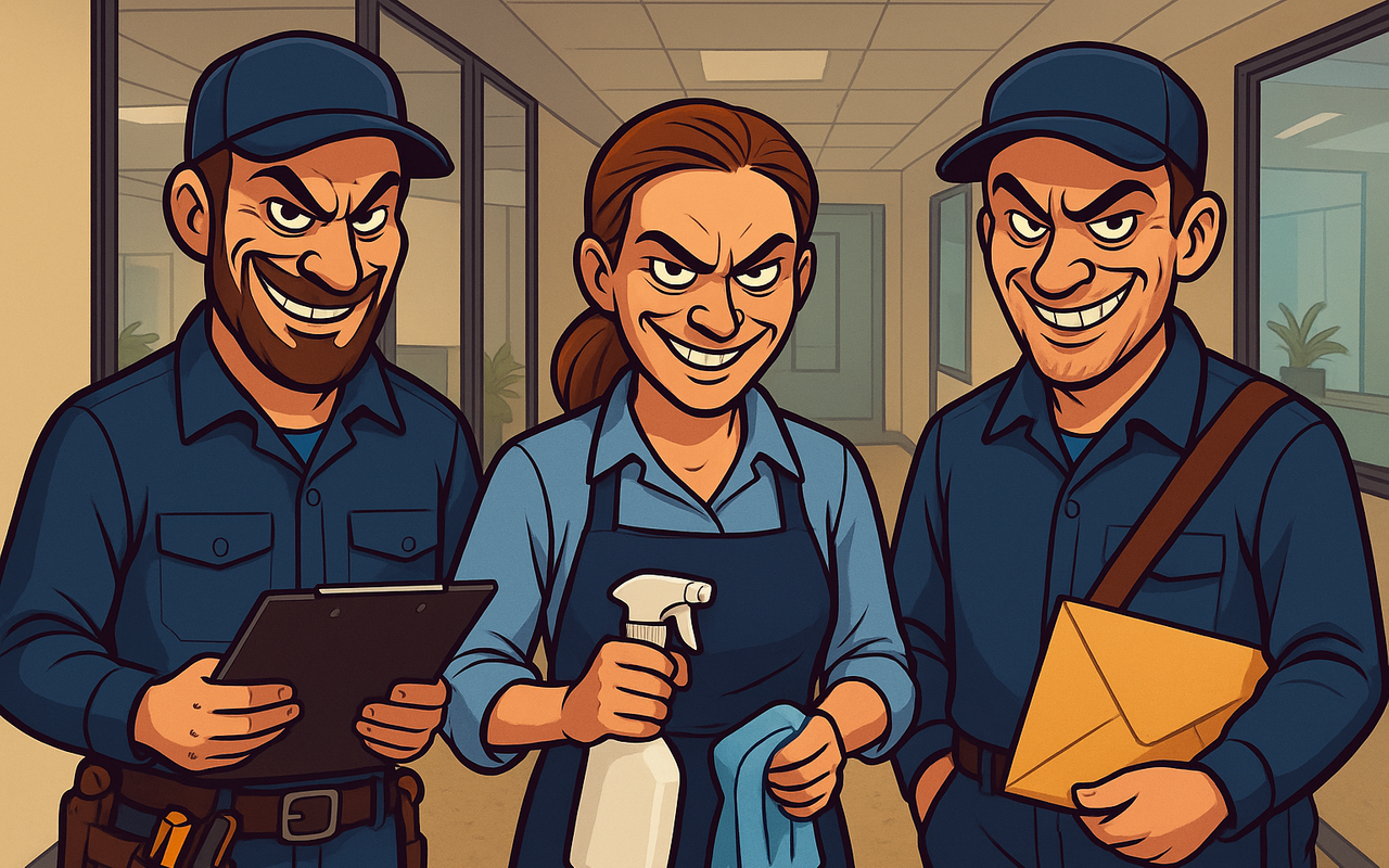 Wer könnte unser Täter sein? Der Techniker, die Putzfrau oder der Postbote?