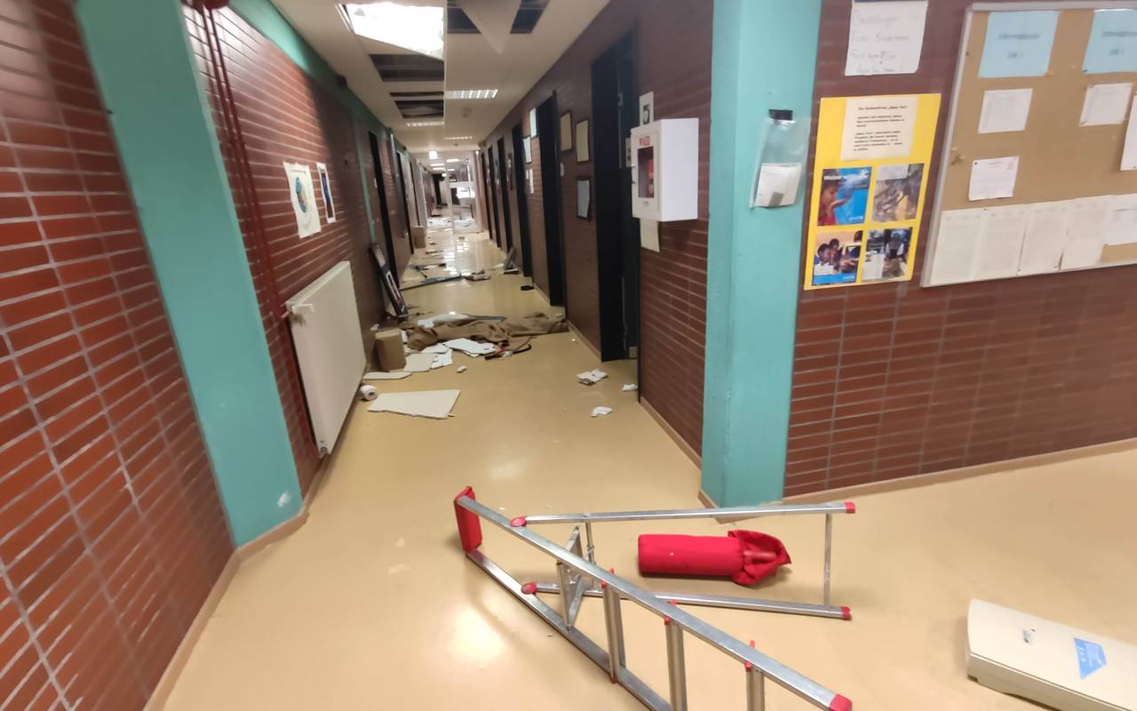 Die Kinder und Jugendlichen waren heute Morgen (31. August) wieder nach Hause geschickt worden. Schuld waren zwei Einbrüche am Wochenende. Die Täter hatten die Schule in den letzten beiden Nächten so verwüstet, dass kein Unterricht möglich war. Die Polizei war stundenlang mit der Spurensicherung beschäftigt. Der Verwaltungstrakt war auf allen drei Etagen betroffen, außerdem die Mensa. Die Täter hatten Türen eingetreten, Brandmeldeanlagen zerstört und Schränke und Schreibtische aufgebrochen. Die Polizei ermittelt in dem Fall.