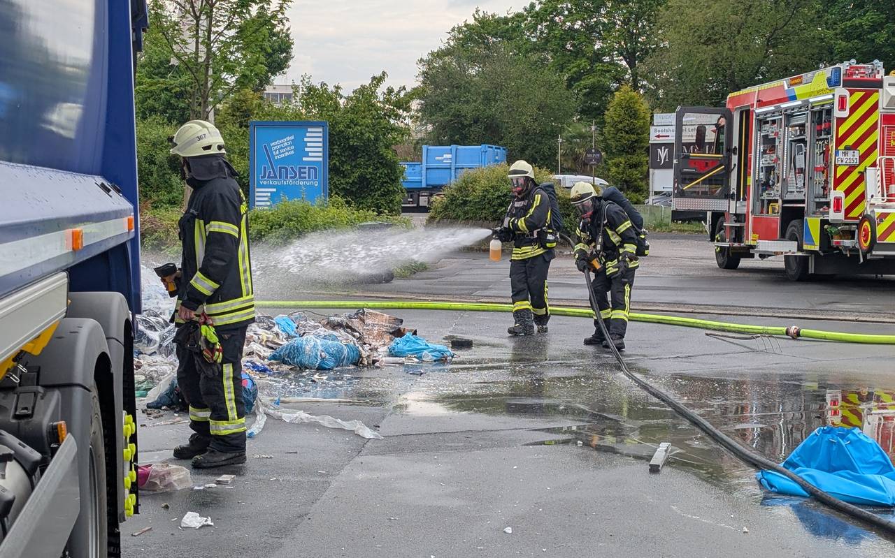 Die Mitarbeiter der MEG hatten den Wagen bereits auf eine freie Fläche gelenkt und den brennenden Müll abgeladen, heißt es. Die Mitarbeiter hatten auch schon mit Feuerlöschern selbst die Flammen bekämpft als die Feuerwehr eintraf. Die übernahm den Rest und löschte mit Wasser und Schaum. Der Restmüll im Fahrzeug wurde mit einer Wärmebildkamera untersucht. Verletzt wurde laut Feuerwehr niemand. Der MEG-Lastwagen konnte ohne augenscheinliche Schäden zum Wertstoffhof fahren. Neben der Feuerwehr waren auch Polizei und das Mülheimer Amt für Umweltschutz im Einsatz.