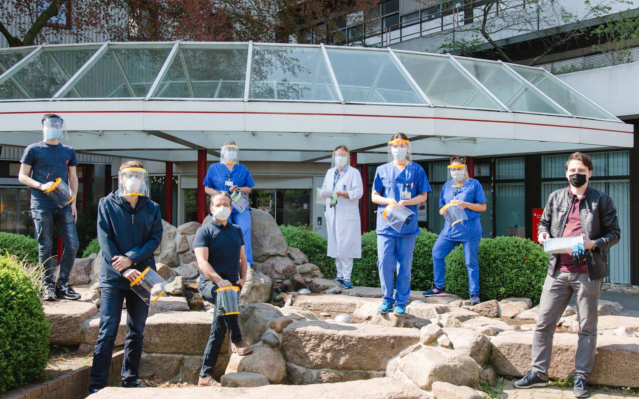 Ein Team der Gustav-Heinemann-Gesamtschule hat in den Osterferien 150 Schutzvisiere für das Evangelische Krankenhaus hier bei uns in Mülheim produziert. Auf fünf 3D-Druckern hat das Team um Physiklehrer Zeljko Malinovic eine Woche lang die Halterungen gedruckt.