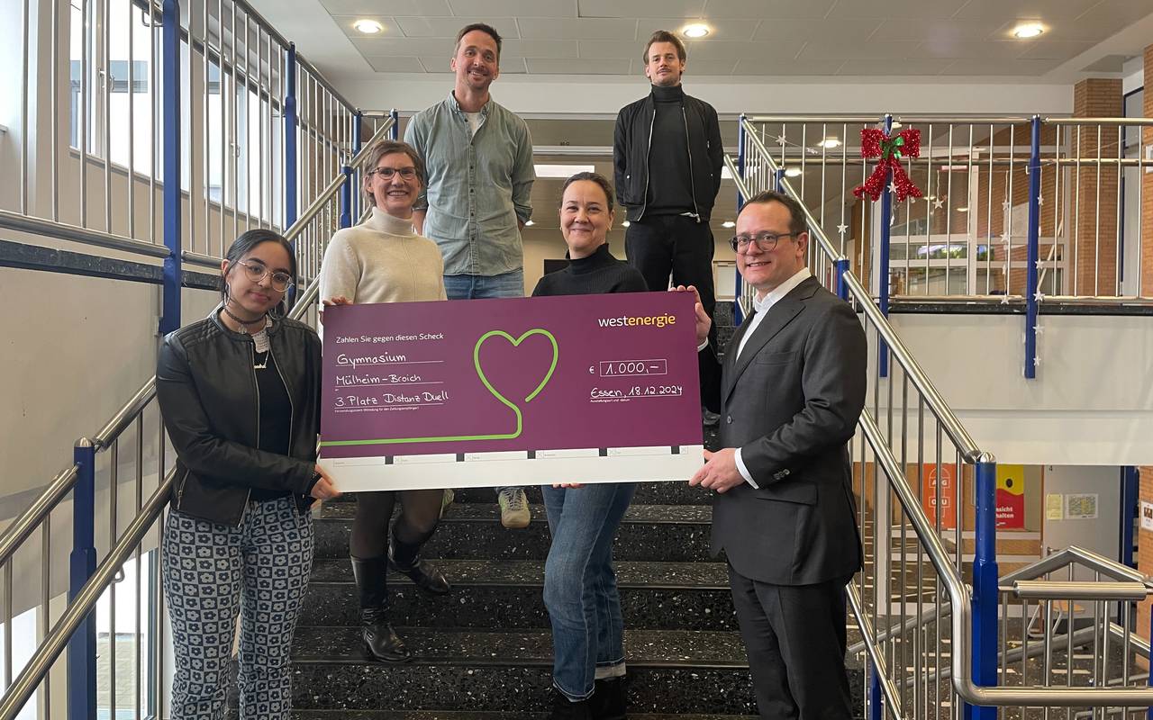 Das Mülheimer Gymnasium Broich hat das Westenergie Distanz Duell in NRW gewonnen. Insgesamt haben 1.154 Schülerinnen und Schüler sowie Lehrkräfte mitgemacht. Sie haben insgesamt 5.622 Kilometer zurückgelegt.