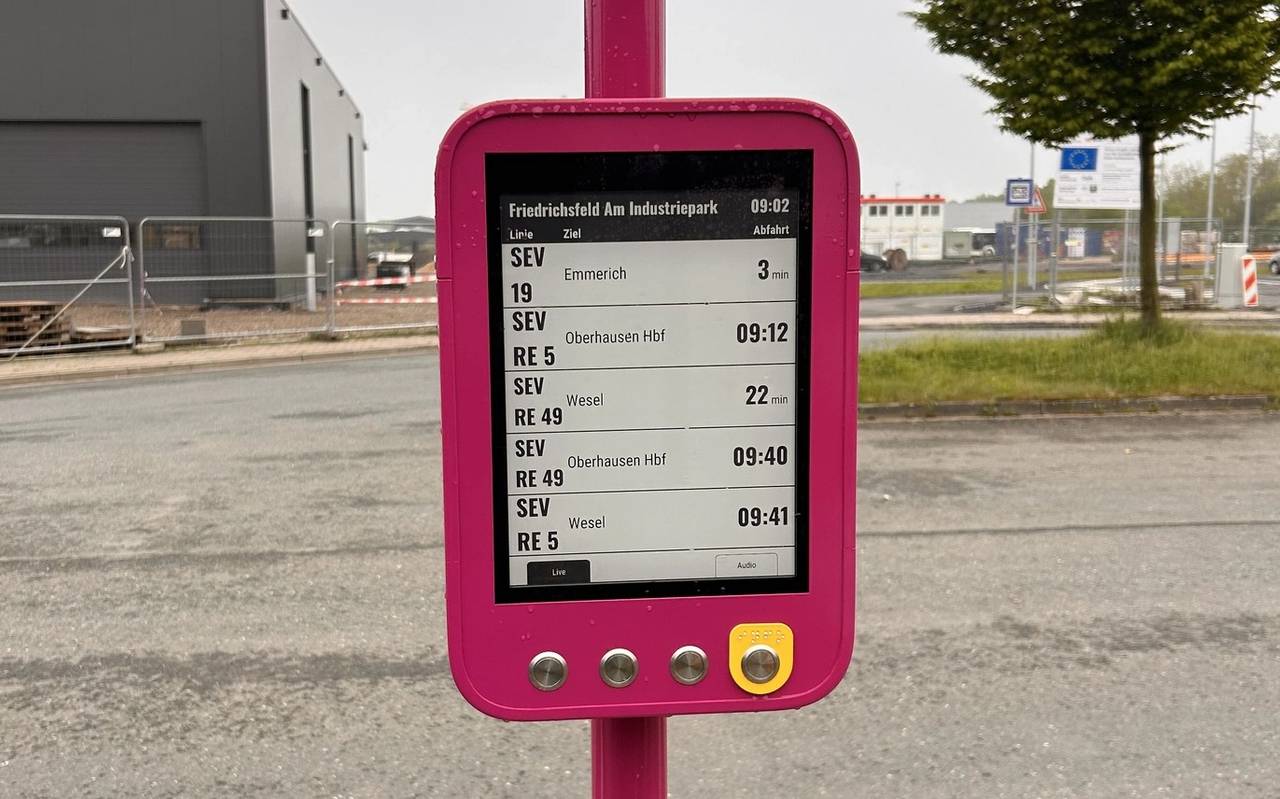 Sie sollen vor allem dort zum Einsatz kommen, wo Ersatzbusse halten, wenn eine Bahnstrecke gesperrt ist. Wenn alles gut läuft, werden die Abfahrtzeiten in Echtzeit angezeigt, ansonsten die Fahrzeiten laut Fahrplan. Bei uns sind die Anzeigen schon testweise eingesetzt worden, während der Bahnsperrung zwischen Dortmund und Essen und zwischen Oberhausen und Wesel/Emmerich. Nach einigen Anpassungen werden sie jetzt landesweit aufgestellt. Die Verkehrsverbünde reagieren damit auch auf mitunter massive Kritik von Fahrgästen. Diese bemängelten u.a., dass die Haltestellen der Ersatzbusse häufig nur schwer zu finden seien und es vor Ort kaum Infos gebe.