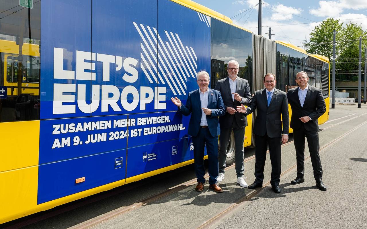 Die Menschen hier bei uns sollen für Europa sensibilisiert und dazu motiviert werden bei der Europawahl am 9. Juni ihre Stimme abzugeben. Die Busse seien rollende Botschafter mit einer hohen Sichtbarkeit im Stadtgebiet, heißt es von der Ruhrbahn. "Gemeinsam können wir aktiv ein vereintes Europa gestalten und positive Veränderungen bewirken“, sagt Mülheims Oberbürgermeister Marc Buchholz bei der Vorstellung der beklebten Busse. Die „Europa-Fahrzeuge“ sind Teil von zahlreichen Aktionen, die im Vorfeld der Europawahl in den Städten stattfinden.