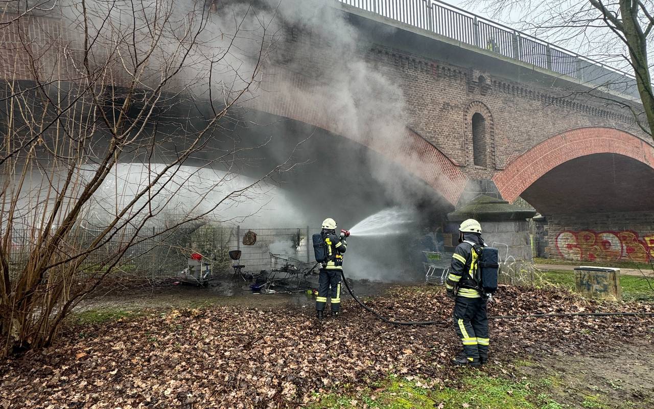 Rauch über der MüGa. Die Feuerwehr musste heute Nachmittag (5.3.) zu einem Einsatz ausrücken. Unter einem der Brückenbögen des Radschnellwegs war die Schlafstätte eines Obdachlosen in Brand geraten.