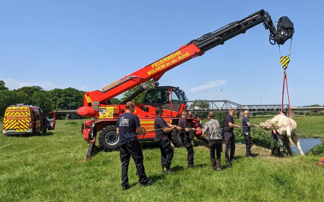Die Feuerwehr hat an den Ruhrauen eine Kuh gerettet. Das Tier war am Samstagmorgen eine steile Böschung in die Ruhr abgerutscht und konnte die Wiese aus eigenen Kräften nicht mehr erreichen, sagte uns ein Sprecher.
