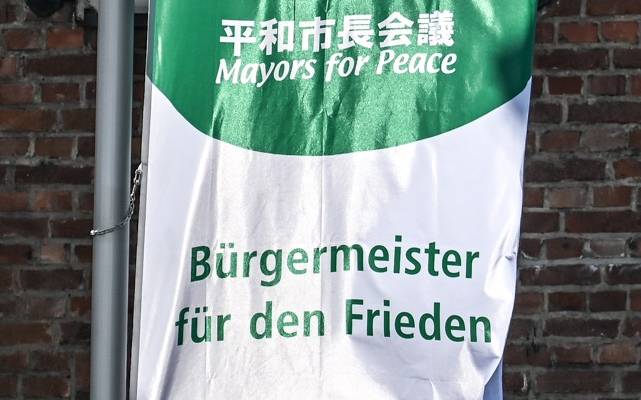 Oberbürgermeister Marc Buchholz hat die Beflaggung angeordnet, um daran zu erinnern, wie wichtig es sei, über nukleare Abrüstung zu verhandeln. Rund 500 Städte in Deutschland haben solch eine Flagge und hissen sie morgen vor ihren Rathäusern, um sich für eine friedliche Welt ohne Atomwaffen zu engagieren.