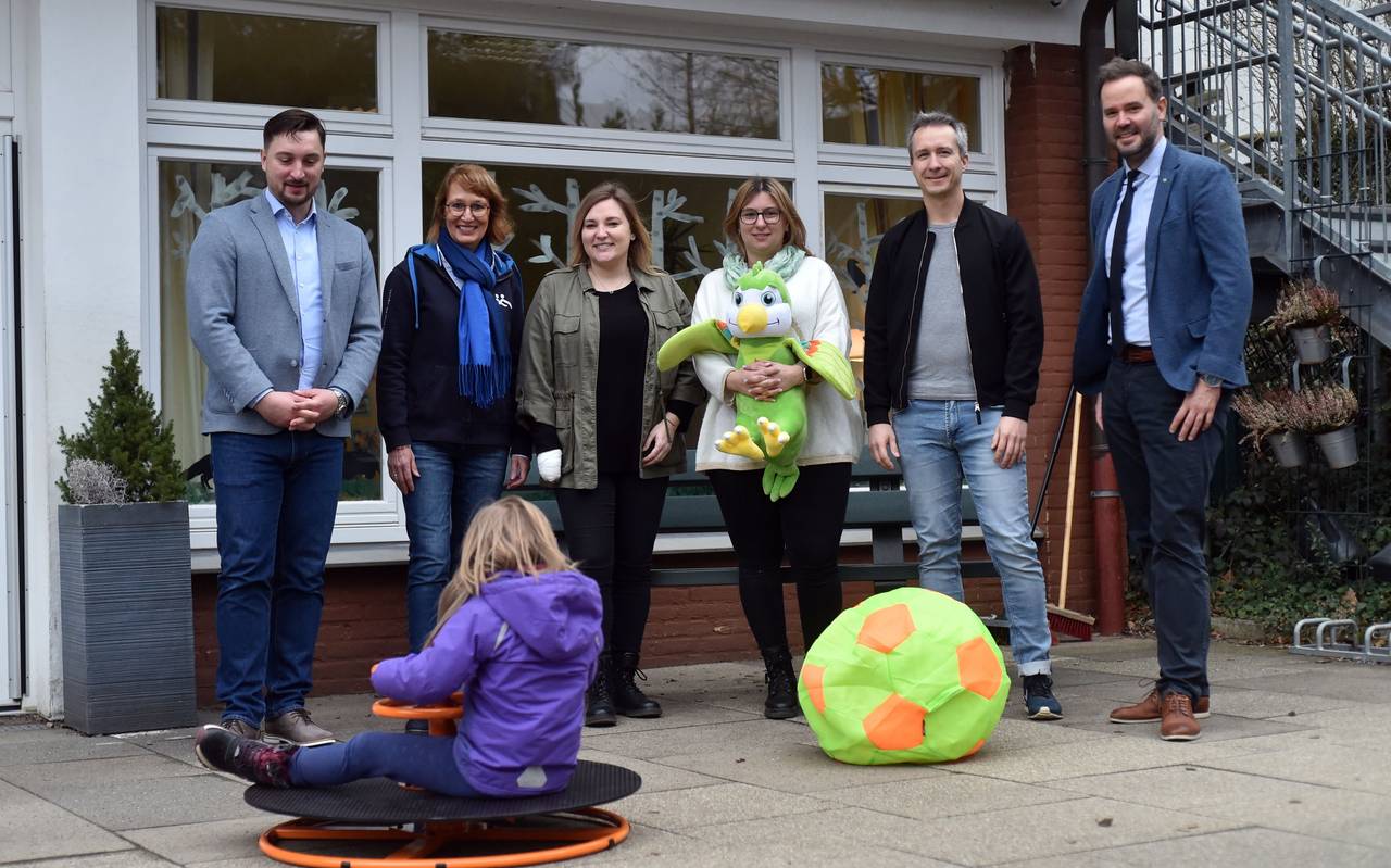 Medl und MSB unterstützen die Kita St. Raphael im Familienzentrum Arche Noah an der Hingbergstraße. Für die Einrichtung gibt es u.a. einen Therapieball, Klettergriffe für eine Kletterwand, „Faszinationsmatten“ sowie ein Karussell für den Außenbereich.