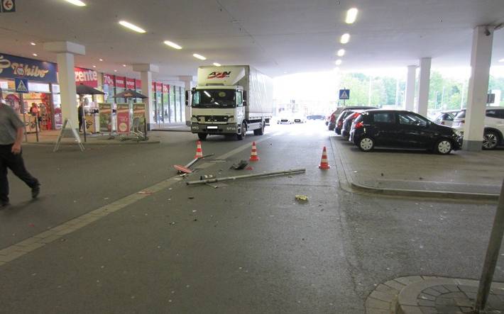 Fußgänger angefahren und Verkehrszeichen umgerissen