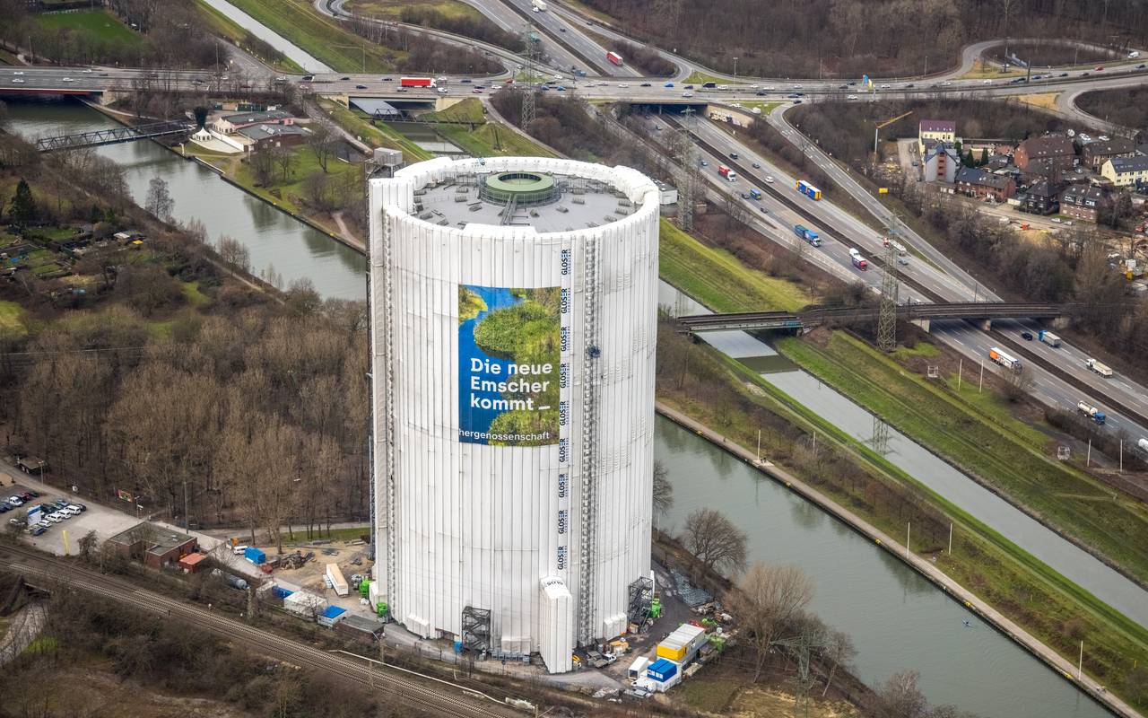 Vermutlich können wir etwa ab dem 18. März anfangen, das riesige Fassadengerüst abzubauen. Dann kann auch die weiße Plane verschwinden, die den Gasometer aktuell einhüllt. Dann zeigt sich die neue Außenschicht in einem Grauton mit Rotstich. Die alte war durch Wind und Wetter abgenutzt und durchgerostet und musste deswegen erneuert werden. Innen hat der Gasometer neue Technik bekommen und den Brandschutz erneuert. Die Sanierung kostet rund 14,5 Millionen Euro. Bund, Land und Regionalverband Ruhr geben Geld dazu.