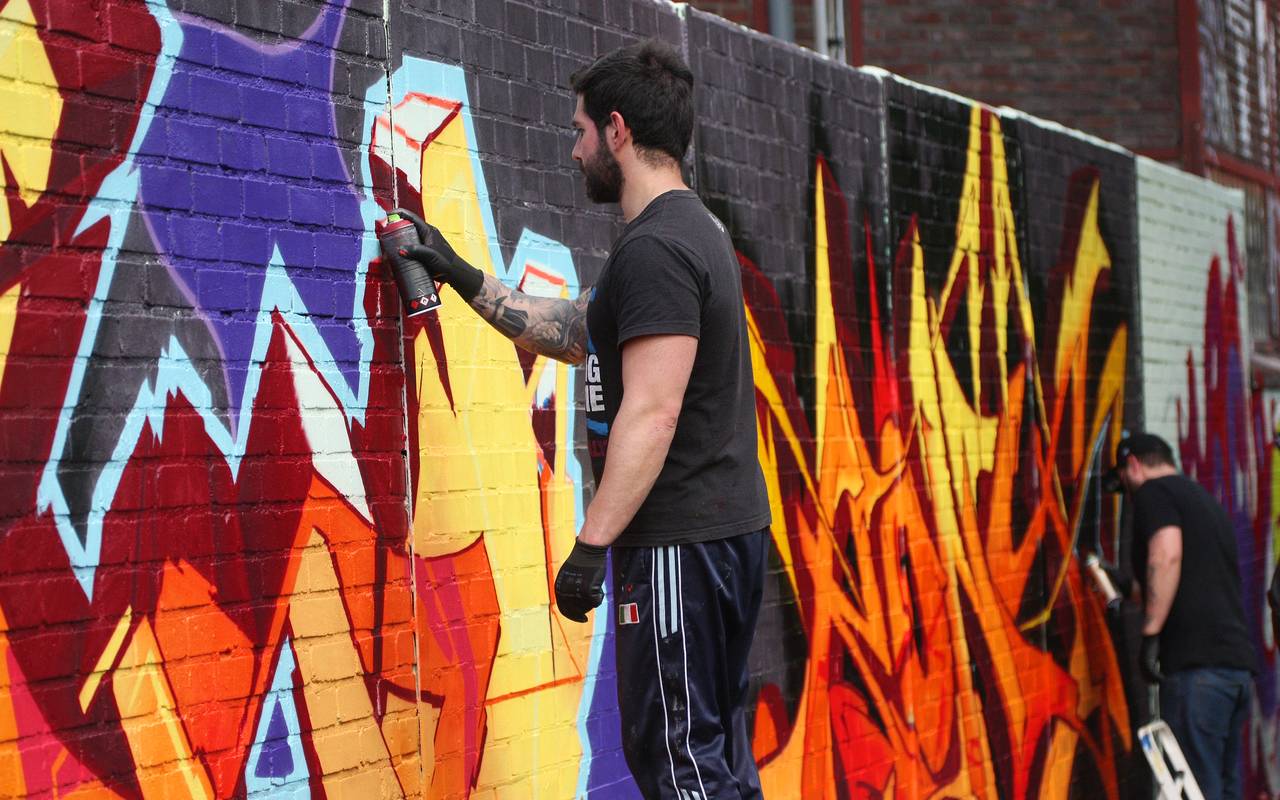 An der A42-Brücke im Essener Stadthafen treffen sich heute und morgen Graffiti-Künstler aus ganz Deutschland und dem benachbarten Ausland. Sie wollen die zwölf großen Brückenpfeiler und die Abschlusswand - etwa 30x10 Meter groß - besprühen.