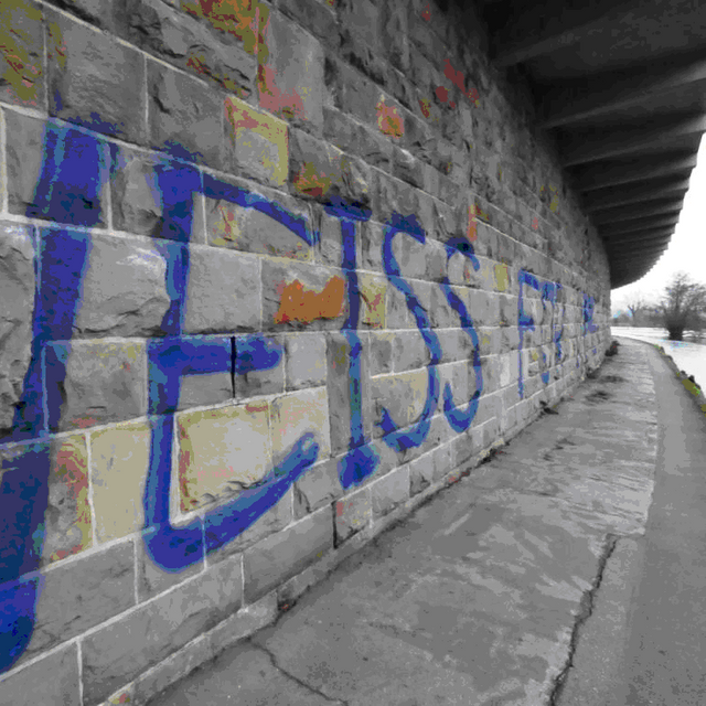Das passiert ganz legal im Rahmen des Grafitti-Festivals "Hafendampf No. 7". Einer der Pfeiler wird komplett von jugendlichen Workshop-Teilnehmern gestaltet.