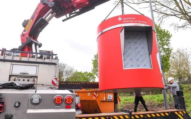 Die Betonhülle schütze im Fall einer versuchten Sprengung durch Kriminelle nicht nur den Automaten selbst, sondern auch die Umgebung, sagt ein Sprecher. Ein herkömmlicher Automatenpavillon wiege im Vergleich dazu nur drei Tonnen. Der Geldautomat mit spezieller Betonhülle ist bereits der Vierte, der in Mülheim von der Sparkasse aufgestellt wird. Das Geldinstitut reagiert damit auf zahlreiche Sprengungen und Sprengversuche in den vergangenen Jahren. Seit 2019 sind in Mülheim sieben Geldautomaten gesprengt worden, zuletzt im Frühjahr 2022.