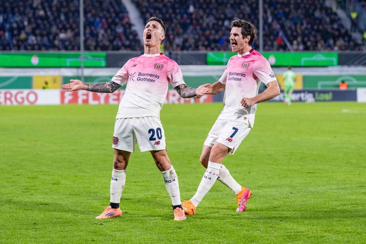 Álex Grimaldo sorgte per Freistoß für das 1:0 für Bayer Leverkusen.