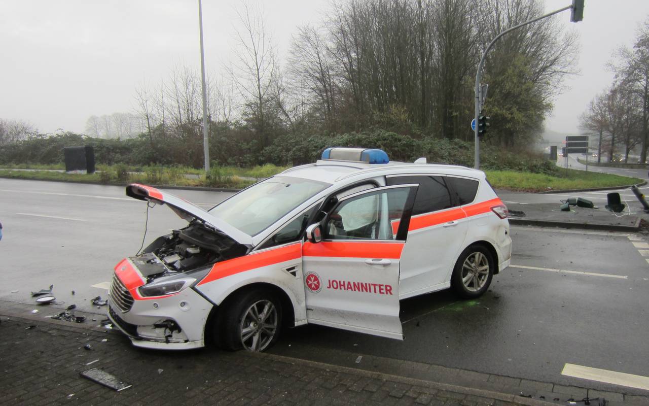 Auf der Aktienstraße ist am gestrigen Sonntag ein Auto der Johanniter-Unfallhilfe verunglückt. Auf Höhe der A40 hatte der Fahrer an der Kreuzung die Kontrolle über das Auto verloren und die Ampel gerammt, meldet die Mülheimer Feuerwehr.