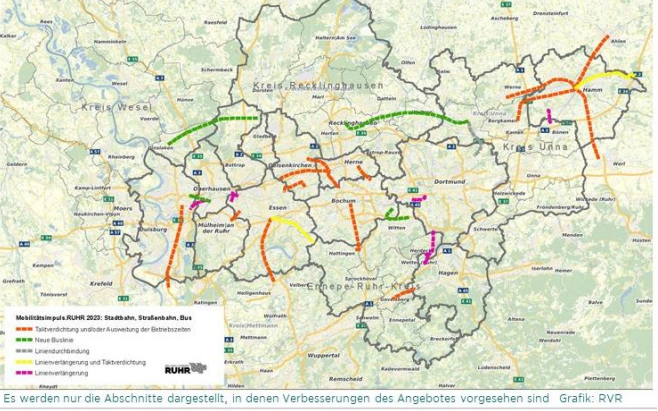 Erst hieß es, wenn sich die Region auf konkrete Maßnahmen zur Verbesserung des öffentlichen Nahverkehrs im Ruhrgebiet einigt, gäbe es Unterstützung vom Land. "Davon ist nichts mehr zu spüren", sagt Bochums Oberbürgermeister Eiskirch, der auch Vorsitzender des Kommunalrates ist. "Wir als Region haben einen Vorschlag aus einem Guss geliefert, aber das Land liefert nicht", so Eiskirch weiter. Der Kommunalrat hatte im Rahmen des Mobilitätsimpuls.Ruhr sogar 28 konkrete Verbindungen erarbeitet, die jeweils zwei Städte betreffen. So sollte zum Beispiel eine neue Buslinie den Oberhausener Hauptbahnhof und den Duisburger Landschaftspark Nord verbinden und die Linie SB 94 von Essen-Frintrop Unterstraße bis Oberhausen Sandgathe/Ankerstraße verlängert werden. Auch eine engere Taktung bei der Linie 104 zwischen Mülheim Grenze Borbeck und Essen Abzweig Aktienstraße an Samstagen war vorgesehen. Wenn kein Geld vom Land kommt, können diese Verbesserungen nun auf absehbare Zeit nicht realisiert werden, heißt es vom Kommunalrat.