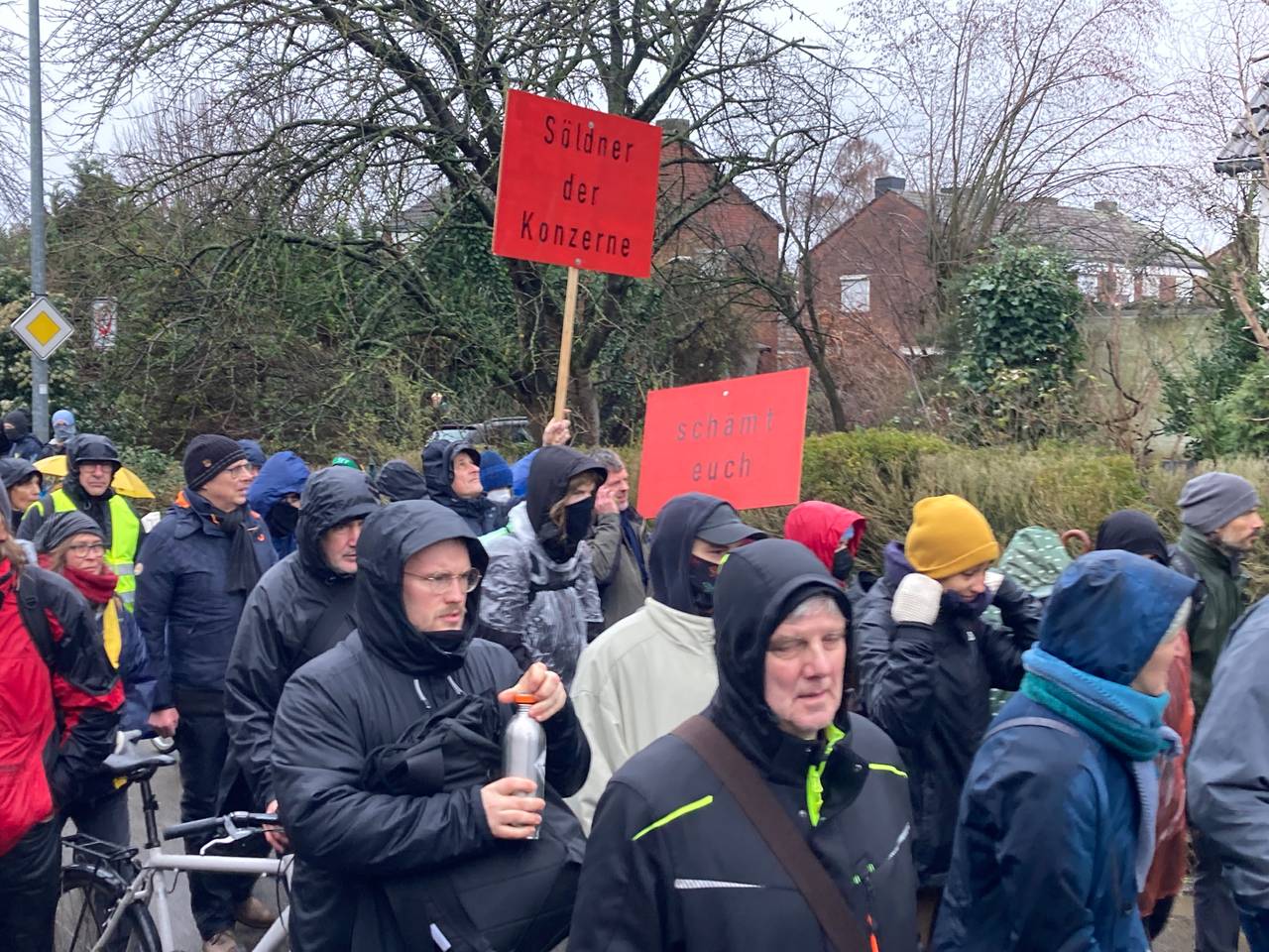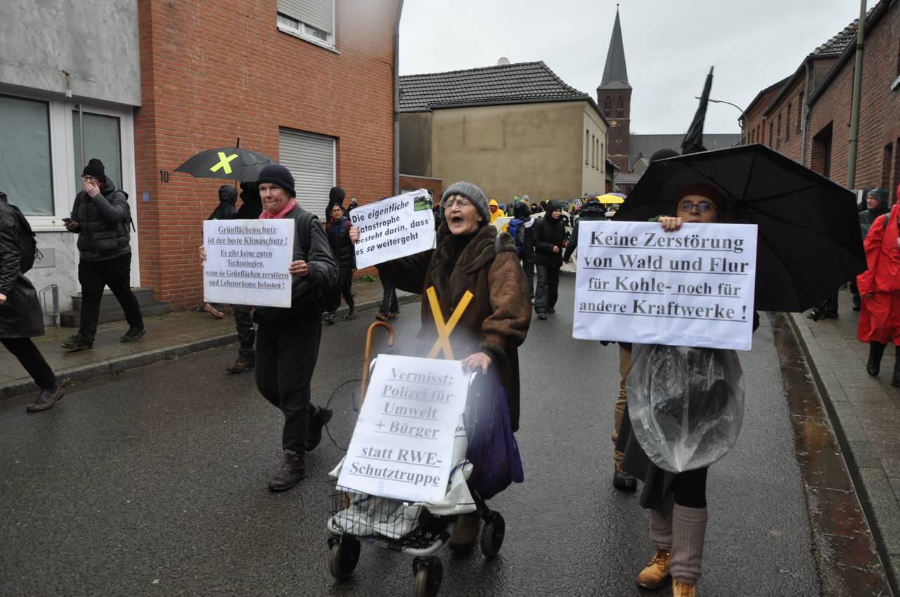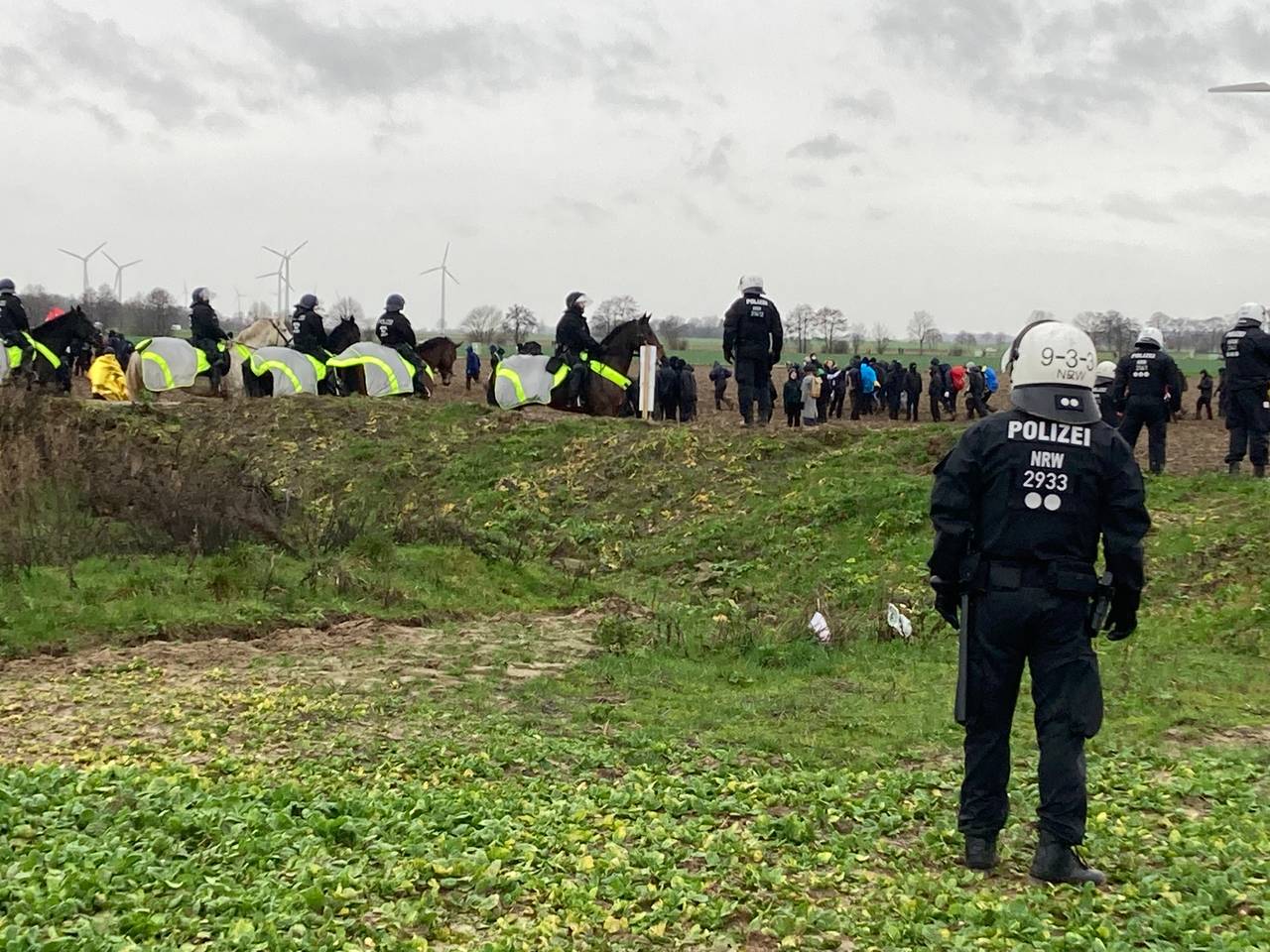 Das kleine Lützerath, ein Ortsteil von Erkelenz westlich von Köln, ist seit Tagen von der Polizei abgeriegelt und mit einem doppelten Zaun umgeben. Die wenigen Gebäude der Siedlung werden derzeit abgerissen, um es dem Energiekonzern RWE zu ermöglichen, die darunter liegende Kohle abzubaggern. Dagegen protestierten am Samstag trotz Dauerregens und starker Windböen viele Tausend Menschen im benachbarten Ortsteil Keyenberg. Die Polizei sprach von 15.000 Teilnehmern, die Veranstalter schätzten die Zahl auf 35.000.