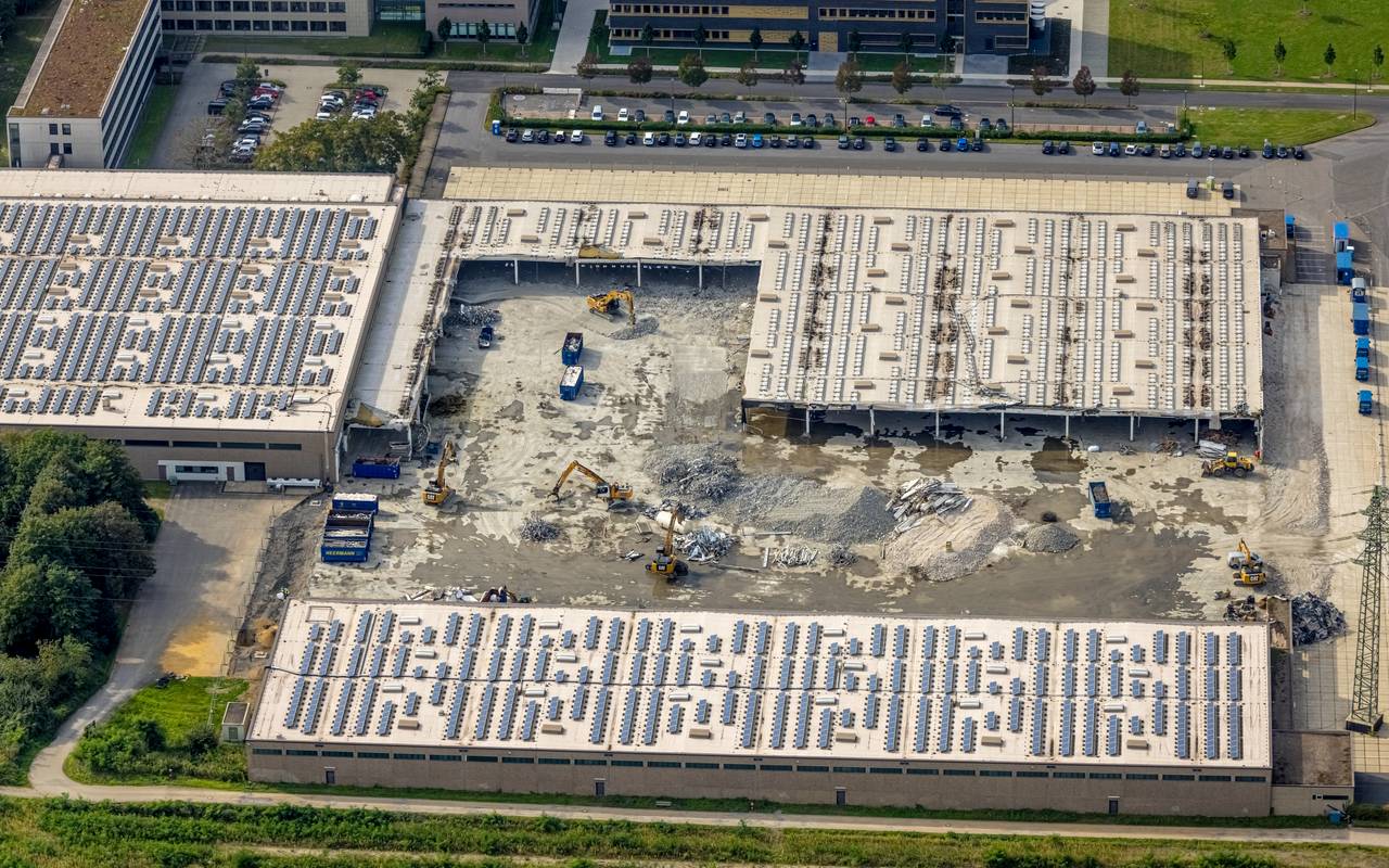 Der Abriss des alten Logistikzentrums von Aldi Süd in Styrum läuft. Wie lange der Abbrucharbeiten dauern ist nicht bekannt. Klar ist aber, dass im Anschluss eine Grünfläche auf dem Gelände hergerichtet werden soll.