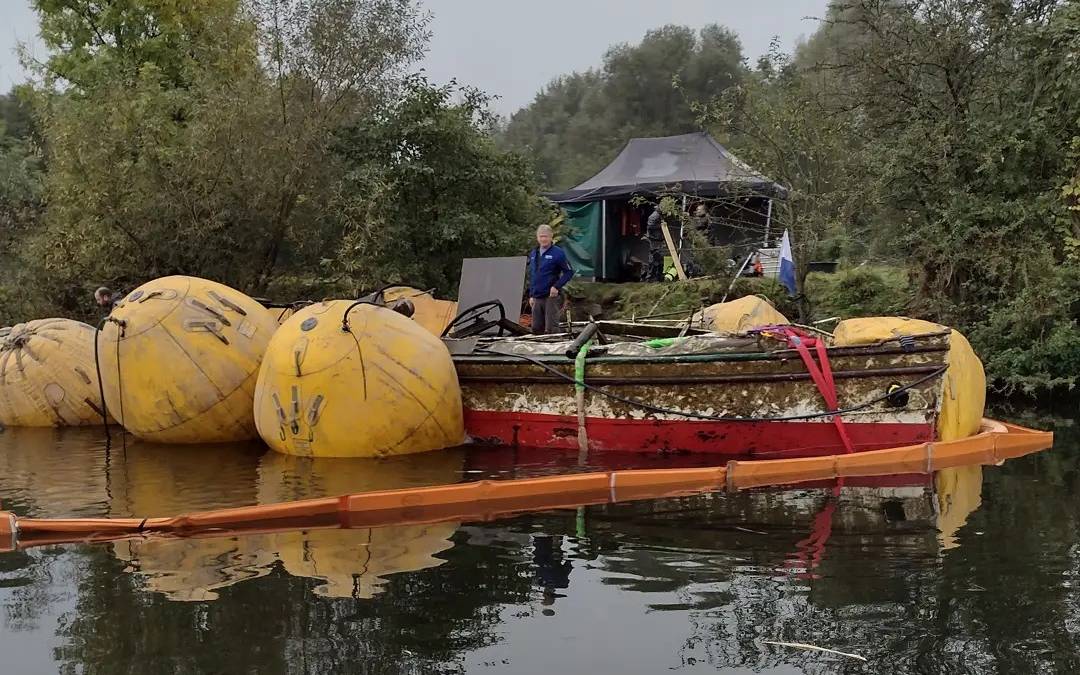 Jetzt, wo die Moornixe wieder an der Wasseroberfläche ist, wird erst deutlich, wie groß die Schäden sind. Das Fahrgastschiff war beim Hochwasser der Ruhr durch das Kahlenbergwehr gezogen worden. Es lag fast drei Monate lang unter Wasser. Gestern hat eine Spezialfirma es zusammen mit der Feuerwehr geborgen.