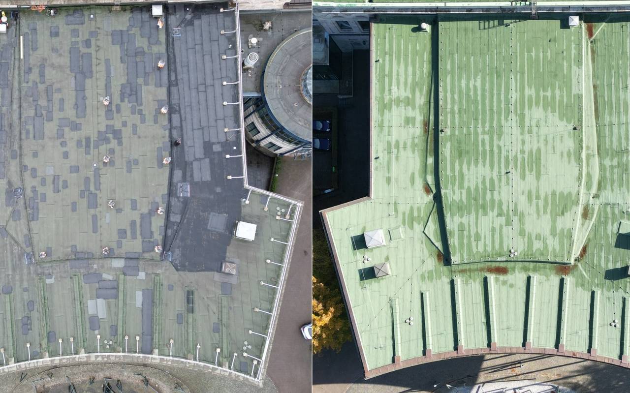 Das Dach der historischen Mülheimer Stadthalle ist fertig saniert. Begonnen hatte die Planungsphase schon im Dezember 2022. Die reine Bauzeit lag bei elf Monaten.