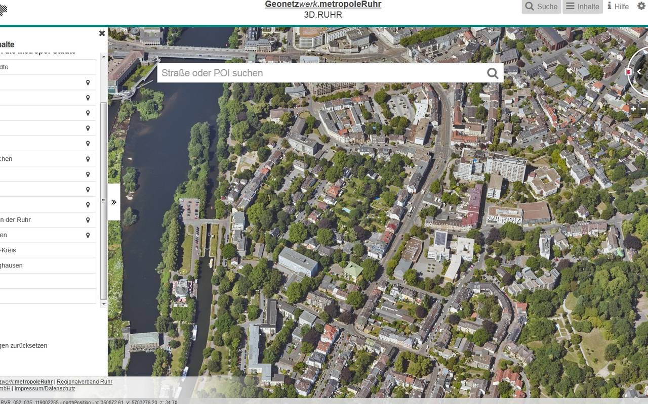 Mithilfe einer Suchfunktion können bestimmte Orte, Straßen und Plätze genau gefunden werden. Viele der Aufnahmen sind vergleichweise aktuell. Details lassen sich sehr gut sehen, auch aus unterschiedlichen Richtungen. Seit 100 Jahren fotografiert der Regionalverband Ruhr (RVR) in Zusammenarbeit mit den Städten und Kreisen unsere Region. So können Veränderungen der letzten Jahre beobachtet werden.