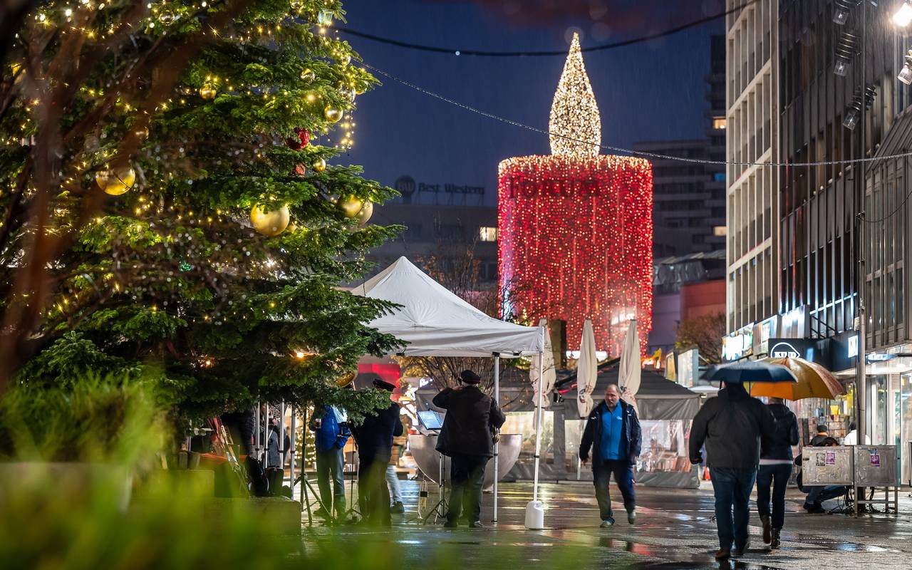 Der Mülheimer Weihnachstreff in der Innenstadt ist eröffnet. Die Beleuchtung leuchtet ab sofort in der Dunkelheit. Der Markt im Bereich des Forums bietet vor allem Leckereien wie Glühwein, Kakao, Reibekuchen, Bratwurst, Crêpes und gebrannte Mandeln.