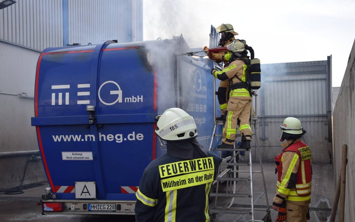 Müllwagenbrand fordert Feuerwehr über Stunden