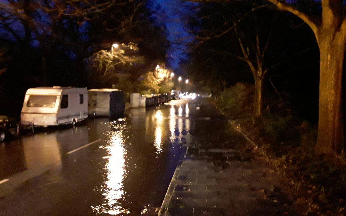 +++ Der Nachbarsweg wird heute (30.11.) wieder freigegeben. Grund für die Überflutung war laut Stadt ein verstopfter Bachdurchlass. Dieser soll jetzt alle zwei Tage kontrolliert werden +++