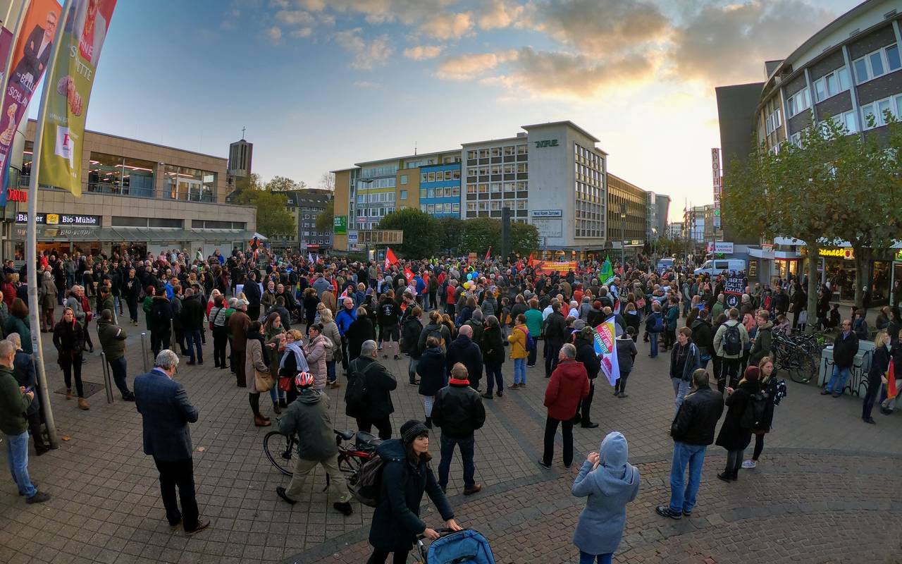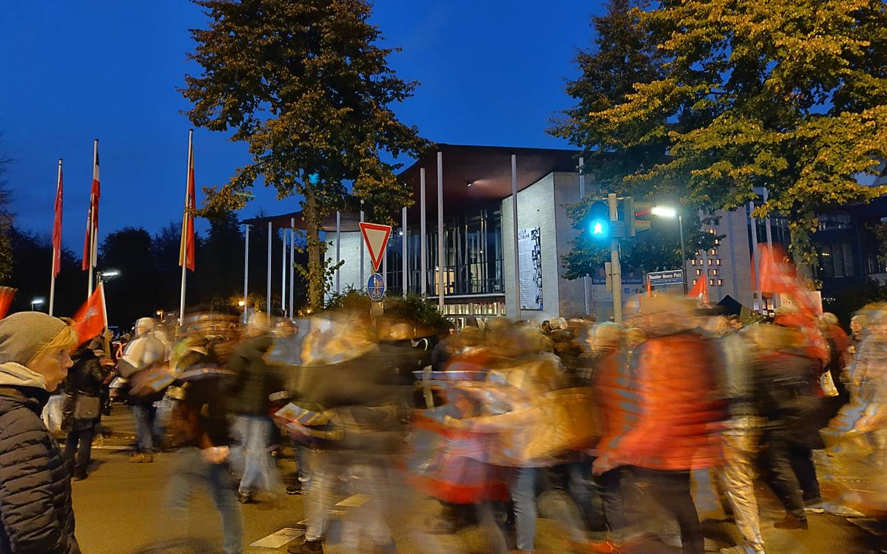 Bei der Demo am Dienstag hatte sich der Protestzug zunächst vorm Forum versammelt und war dann Richtung Stadthalle gezogen. Insgesamt gesehen war es laut Polizei friedlich. Da statt der erwarteten rund 1.000 Teilnehmer aber deutlich mehr kamen, musste der Bereich rund um die Stadthalle umfangreicher abgesperrt werden, als geplant.