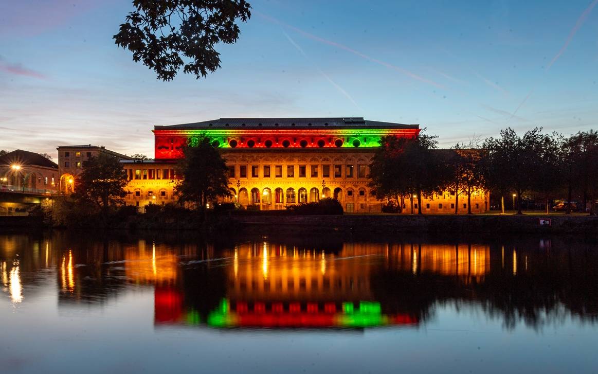 Die Mülheimer Stadthalle hat eine komplett neue Beleuchtung bekommen. Mit Unterstützung des Unternehmens Westenergie konnten die Leuchten sowohl innen als auch außen erneuert werden.