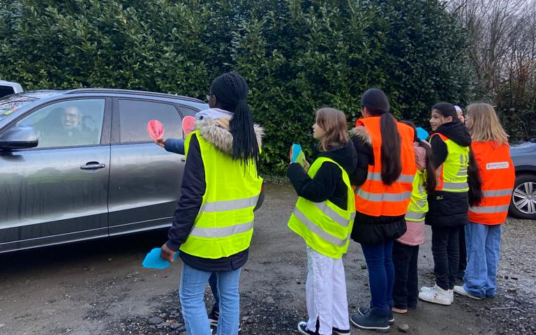 Bei uns in Mülheim gibt es eine weitere Elternhaltestelle. Sie ist für Eltern eingerichtet worden, die ihre Kinder mit dem Auto zu Realschule und Gymnasium in Broich bringen wollen.